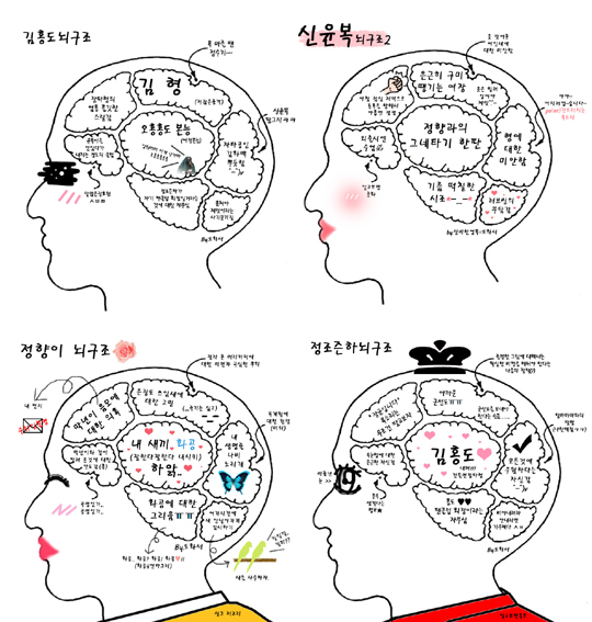 SBS 수목드라마 ‘바람의 화원’ (이은영 극본, 장태유 연출)의 김홍도(박신양 분), 신윤복(문근영 분) 등 주인공들의 뇌구조가 공개돼 폭소를 자아내고 있다. 한 열혈네티즌이 ‘바람의 화원’ 주인공 홍도와 윤복과 정향, 정조의 뇌구조를 각각의 캐릭터에 맞게 자세하게 분석해 보는 이의 시선을 끌고 있는 것. 홍도의 뇌구조의 경우 한가운데에는 ‘단오풍정’때 보여준 여장 모습 캡처와 함께 ‘여장본능’이 차지했다. 윤복으로부터 들은 ‘김형에 대한 충격’과 ‘정조가 자기 팬클럽 회장일 것이라는 자부심’등도 눈에 띈다. 윤복의 뇌는 ‘단오풍정’ 당시의 ‘정향과의 그네타기’가 가장 크게 부각되었다. ‘은근히 구미당기는 여장’과 ‘형에 대한 미안감’과 더불어 간드러지는 목소리로 들려준 ‘아아 어지럽습니다’도 있다. 다른 뇌구조에서는 ‘정향에게 털린 전재산 닷냥’, ‘그림=그리움’도 포함돼 있다. 정향은 윤복을 향한 마음인 ‘내새끼 화공’, ‘화공에 대한 그리움’이 가장 크게 자리잡았고 ‘막년이 음모에 대한 의혹’과 ‘은장도 쓰임새에 대한 고민’, ‘내 생명줄 나비노리개’가 눈에띈다. 다른 뇌구조에는 ‘고작 닷냥’과 ‘난 꽃이다’, ‘홍도에 대한 경계’, ‘처음이 중요하다는 생각’이 담겨있다. 이어 정조의 뇌구조에는 김홍도에 대한 무한 신뢰를 보여주듯 ‘김홍도 내꺼 건들면 장파형’과 ‘홍도 팬클럽 회장이라는 자부심’이 가장 크게 자리했다. 이어 ‘군선도를 보내야 한다는 슬픔’도 뇌의 대부분을 차지하고 있고, ‘할마마마와의 맞짱’은 작지만 눈여겨 볼 부분이다. 이같은‘바람의 화원’의 주인공들의 뇌구조 공개는 극중 정조의 의지에 따라 홍도와 윤복이 어진화사를 실시할 시점에다 윤복과 정향간의 애틋한 사랑이 위기에 놓이며 긴장감이 조성되자 시청자들의 관심과 사랑이 몰리면서 제작된 것으로 풀이된다. yu@osen.co.kr