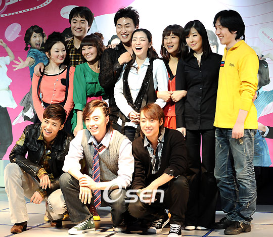 대학로를 웃음바다로 만든다는 소문의 뮤지컬 ‘온에어 시즌2’ 가 지난 10월 7일 막을 올리고 새로운 ‘온에어 시즌2’ 매니아 확보를 위해 27일 오후 대학로 스타시티에서 요란한 프레스 콜을 열었다. 배우 오대환의 감칠 맛 나는 말솜씨로 프레스 콜의 문을 활짝 열었다. 알렉스 역을 맡은 김동욱 오종혁 장서원이 3인 3色의 독특한 매력을 선보였다. 이에 질세라 '오버쟁이' 우아미 역의 김다래와 자두는 기자들 시선에 부담스러워진 무대를 편안하고 밝은 분위기로 이끄는 데 한 몫 했다. ‘사랑은 비를 타고’로 뮤지컬계에 떠오르는 이민경은 김순정 역을 거뜬히 소화해내며 뮤지컬 베테랑 배우 유정은과 어깨를 나란히 했다. ‘온에어’ 마스코트 오대환은 개그맨 못지않은 오대환표 개그로 딱딱한 객석을 한층 여유 있게 만드는 데 윤활유 역을 톡톡히 했다. 공연계로 흘러드는 연예계 유행에 발맞춰 가수, 개그맨, 드라마 연기자 등의 대거 출연으로 이목을 집중시켰던 ‘온에어 시즌2’에 초대받은 기자들은 인기스타들의 열연에 카메라 셔터 누르기에 바빴다. 평소 ‘온에어’스러운 발랄하고 편안한 무대는 프레스 콜이라는 기자들 틈에서 100% 활용되진 못했다. 화려한 무대와 겉보기에 요란한 뮤지컬이 아닌, 연기로 이야기하고 익숙한 뮤직넘버로 관객을 흡수시키는 ‘온에어 시즌2’의 짤막하게 보여진 프레스 콜은 아쉽기만 하다. 프레스 콜로 전하지 못한 ‘온에어 시즌2’의 매력은 관객이 되어 한편의 감동으로 다가왔을 때, 100% ‘온에어 시즌2’의 매력을 느낄 수 있겠다. in@osen.co.kr 뮤지컬 ‘온에어시즌2’의 프레스콜 현장. /강희수 기자 100c@osen.co.kr
