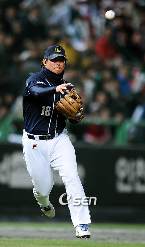 두산 김동주(32)의 잇따른 악송구가 팔 통증 때문으로 드러났다. 2차전 패배후 김경문 감독은 방송취재진과 인터뷰에서 "동주가 팔이 아파서 던지는데 문제가 있었다. 그래서 1루수로 돌렸다"고 말했다. 김 감독은 "오재원이는 시즌 내내 1루수만 보았는데 아무래도 3루수비는 낯설었을 것이다. 그래서 수비실책이 나온 것 같다"고 덧붙였다. 이날 김동주는 3회초 선두타자 정근우의 타구를 잡았으나 1루수 옆으로 볼을 던지는 바람에 그만 주자가 살아났다. 4회에서도 최정의 강습타자를 잘 걷어냈으나 1루수 키를 훌쩍 넘기는 송구를 했다. 평소와 달리 볼을 제대로 뿌리지 못하는 모습이었는데 팔 통증 때문이었다. 김동주는 이 실책과 함께 1루수 오재원과 포지션을 맞바뀌었다. 프로데뷔 첫 1루수비였다. 다행히 후속타자들을 잡아내 실점으로 연결되지 않았다. 그러나 3루수로 옮긴 오재원이 거푸 실책을 범했다. 5회 정근우의 빗맞은 타구에 바운드를 맞추지 못하는 실책으로 출루시켰다. 결국 정근우의 도루성공과 후속 2루타를 맞고 결승점을 내주는 빌미가 됐다. 오재원은 8회말에서도 선두타자 최정의 타구를 잡지 못해 네 번째 실책이 나왔다. 결국 두산은 3루수의 실책 러시가 패인이 되고 말았다. 김경문 감독은 김동주의 3루 복귀에 관련해 "내일(28일) 하루 쉬면 괜찮을 것으로 보인다. 3차전부터는 김동주가 3루로 돌아갈 것이다"고 말했다. 프로데뷔후 첫 1루수로 출전한 김동주의 딴살림은 단 하루로 끝날 것으로 보인다. sunny@osen.co.kr