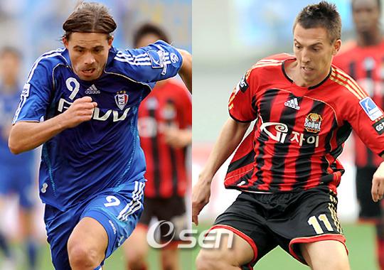 정규리그 우승의 향배가 걸린 서울과 수원의 한판 승부서 '외인 킬러' 대결이 관심을 모으고 있다. 승점 48점으로 골득실차에 의해 1, 2위를 달리고 있는 수원과 서울은 29일 수원 월드컵경기장에서 삼성 하우젠 K리그 2008 24라운드를 벌인다. 골득실 +19의 서울과 +18의 수원의 대결은 팀 당 3경기씩 남겨놓은 시점에서 리그 1위를 놓고 피말리는 싸움이 될 전망이다. 양 팀은 올해 세 번 만나 2승1패로 수원이 우위를 점하고 있다. 수원이 우승을 차지한 컵대회서 A조에 함께 속해 더욱 많은 승부를 펼친 것. 차범근 감독과 세뇰 귀네슈 감독의 지략 싸움과 함께 플레이오프를 제외한 정규리그서 마지막 대결이 될 이번 경기서 양 팀의 창이 될 외국인 선수 에두(수원)와 데얀(서울)의 활약상이 관심사다. 에두는 올 시즌 정규리그서 12골 4도움을 기록하고 있다. 정규리그와 컵대회 포함 34경기에 출전한 에두는 15득점 6도움으로 지난해에 비해 실적이 향상됐다. 브라질 출신의 에두는 180cm, 80kg의 탄탄한 체격으로 측면 돌파에 이어 문전에서 확실한 결정력을 선보이며 수원의 공격을 이끌고 있다. 하지만 올 시즌 서울을 상대로는 지난 4월 13일 정규리그 경기서 1도움을 기록한 것 밖에 없다. 최근 컵대회서 결승골을 터트린 배기종이 파트너로 나설 전망이지만 에두의 득점포가 터지지 않는다면 상승세의 서울을 잡는 게 쉽지 않을 전망이다. 13골 6도움을 기록하고 있는 187㎝의 장신 공격수 데얀은 공간 침투가 좋고 결정력이 높다. 그러나 에두가 그렇듯 데얀도 올 시즌 수원과 경기서는 한 차례 출전해 득점포를 터트리지 못했다. 물론 데얀에게는 에두에게 없는 든든한 지원군이 있다. 이청용, 기성용 등 최근 주가가 폭등하고 있는 도우미들이 있기 때문에 그들의 지원 사격을 받는다면 더욱 좋은 경기를 할 수 있을 것으로 보인다. 과연 올 시즌 양팀의 대결서 득점포를 쏘아 올리지 못한 에두와 데얀의 킬러대결서 승자가 누가 될지 궁금하다. 10bird@osen.co.kr