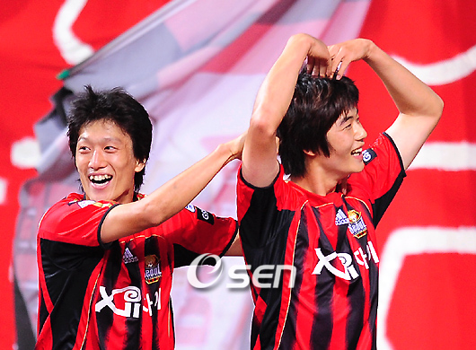 FC 서울의 미래 '쌍용' 기성용-이청용이 해냈다. FC 서울은 29일 수원 월드컵경기장에서 열린 삼성 하우젠 K리그 2008 24라운드 수원 삼성과 경기서 후반 추가시간 터진 기성용의 결승골에 힘입어 1-0으로 승리했다. 이날 승리로 서울은 정규리그 1위를 굳건히 하며 우승을 향한 큰 걸음을 내딛었다. 서울은 이날 승리로 승점 3점차로 앞서며 선두를 유지했다. 지난 23라운드 성남과의 경기서 이상협의 결승골에 힘입어 득실차에서 +1로 앞선 서울은 한숨 돌릴 여유를 찾게 됐다. 0-0 무승부로 끝날 것 같았던 올 시즌 최고의 빅매치는 기성용의 발끝에 의해 끝났다. 기성용은 미드필드서 넘어온 롱패스를 수원 수비수 양상민이 헤딩으로 잘못 걷어내자 이를 놓치지 않고 페널티 라인 앞에서 감각적인 논스톱 발리슛으로 골키퍼 이운재 키를 넘겨 골문을 갈랐다. 기성용은 경기를 마친 후 "우리팀이 중요한 시점에서 승리를 거둬 기쁘게 생각한다. 선수들이 많은 준비를 했다"며 "수원의 압박에 경기가 풀리지 않았는데 선수들이 자신감을 가지고 뛴 것이 좋은 결과로 나타났다"고 말했다. 젊은 피 특유의 자신감으로 뭉친 기성용은 골을 넣은 뒤 잉글랜드 프리미어리그 아스날에서 활약하고 있는 엠마뉘엘 아데바요르의 세리머니를 따라하는 등 톡톡 튀는 행동을 선보이며 자신감을 표출했다. 또 이청용도 결승골로 이어진 패스를 넣어준 것 외에도 적극적인 공격과 함께 수비에서도 활약을 선보이며 올 시즌 우승을 노리는 FC 서울에 없어서는 안될 존재임을 증명했다. 10bird@osen.co.kr