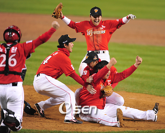 지독하게 지키는 야구의 승리였다. SK는 일찌감치 정규리그 우승을 확정지은 뒤 한국시리즈에 대비했다. 거의 한 달 가까이 한국시리를 준비했다. 그 준비기간은 절대 헛되지 않았다. 마운드, 수비력, 공격력, 기동력에서 두산을 능가하는 탄탄한 전력을 과시하며 한국시리즈 2연패의 신기원을 달성했다. 1차전은 선수들의 몸이 풀리지 않았다. 에이스 김광현이 좁은 스트라이크존에 흔들리며 두산의 기세에 눌려 역전패를 당했다. 김성근 감독이 자랑했던 불펜 투수들도 2점을 내주며 불안한 모습을 보였다. 그러나 이것은 기우였다. 4연승을 위한 예행연습이었다. 2차전에서 특유의 불펜을 앞세워 두산타선을 잠재우고 김재현의 쐐기 투런포를 앞세워 5-2로 전날 패배를 설욕했다. 2-2 동점을 허용했지만 불펜은 5회부터 등장, 5이닝을 노히트노런으로 막아냈다. 5회 실책으로 잡은 찬스에서 박재상의 2루타로 결승점을 뽑았다. 발빠른 김성근 감독의 투수운용도 돋보였다. 3차전은 불펜과 수비력과 한 방이 빛났다. 1-1 동점인 4회부터 불펜 가동에 들어갔다. 4⅔이닝동안 8안타를 맞고도 단 1실점으로 막는 효율적인 피칭을 했다. 최정은 1-1에서 결승 투런포를 날려 승기를 가져왔다. 정우람 윤길현 조웅천 이승호 정대현이 차례로 등장했다. 정대현은 2이닝 4안타를 맞고 9회말 1사만루의 역전위기까지 몰렸다. 그러나 김현수의 잘 맞은 타구를 수비시프트로 차단하고 2루 병살로 엮어냈다. 결과적으로 이번 한국시리즈의 분수령이 된 명장면이었다. 4차전에서는 불펜 기동력 수비력이 어우러졌다. 불펜은 3회부터 등장해 9회까지 두산 타선을 6안타 무실점으로 막았다. 많은 위기를 맞았으나 절묘한 투구교체와 박경완의 노련한 투수리드로 두산의 후속타를 차단했다. 2루수 정근우도 초반 실점위기를 맞는 호수비를 보여주었다. 3개의 도루를 성공시켜 두산 선발 랜들을 흔들어 득점찬스를 모두 살리는 집중력을 과시했다. 김성근 감독은 2차전 선발 채병룡까지 후반에 투입, 승리를 거머쥐었다. 사실상 승부의 물줄기는 SK로 넘어왔다. 두산의 거센 저항으로 5차전은 팽팽한 투수전이었다. 선발 김광현이 1회와 2회 거푸 실점위기를 맞았으나 역시 노련한 피칭으로 두산타선을 제압했다. 두산 선발 김선우에게 무실점으로 눌리던 SK는 7회 사사구 3개로 만루기회를 잡고 상대 3루수의 실책에 힘입어 결승점을 뽑았다. 8회말에서는 2타점 2루타성 타구를 막아내는 조동화의 결정적 호수비가 나왔다. 그리고 또 다시 9회말 1사만루에서 또 다시 김현수를 병살로 막고 우승을 차지했다. 이번 5경기에서 SK는 모든 부분에서 두산보다 앞섰다. 그러나 매경기 위험하고 아찔한 상황을 연출했다. 팬들의 애간장을 녹이며 SK 선수들은 모든 위기를 벗어났다. 더욱이 16득점에 그친 공격력도 위력적이지는 않았다. 그러나 틈만 보이면 상대를 물고 늘어지는 집중력으로 승리의 득점을 올렸다. 이 과정에서 김성근 감독의 노회한 용병술은 고비마다 빛을 발했다. 김 감독은 이번 한국시리즈의 성패를 탄탄한 수비력과 불펜으로 삼았다. 준비기간 내내 수비력 강화에 많은 힘을 쏟아부었다. 예상대로 SK 수비수들은 매 경기 승부처에서 두산의 기를 질리게 만드는 호수비를 연발했다. 상대 타자에 따른 예측 수비로 위기를 막고 팀의 승리를 지켜냈다. 아울러 노련한 박경완을 앞세워 상대 주포 김현수를 철저히 제압, 두산타선의 중심을 분해했다. 정우람과 이승호는 두산의 좌타자들을 무력화 시키는데 성공했다. 5경기 모두 선제점을 뽑았고 승부처에서 절묘한 불펜운영으로 승기를 잡았다. 김성근 감독은 매 경기 자신이 쥐고 있는 패를 적절히 사용, 두산을 2년 연속 제압하고 낙승을 거두었다. SK가 진짜 강한 이유이다. sunny@osen.co.kr