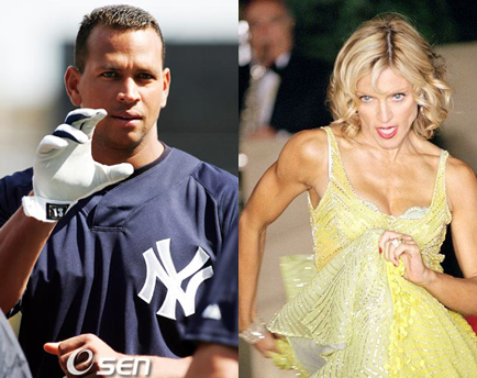 최근 영화감독인 가이 리치와 이혼한 팝의 여왕 마돈나(50)가 미국 메이저리그 뉴욕 양키스의 간판 타자 알렉스 로드리게스(33)와 007을 방불케하는 은밀한 데이트를 즐기고 있다. 각자 미국의 팝과 프로야구를 대표하는 연상연하 커플의 만남은 요즘 미 대중의 큰 관심을 모으는 중이다. 3일(한국시간) 미국의 일간지 '뉴욕 포스트'에 따르면 두 연인은 파파라치와 세간의 시선을 따돌리기 위해 각자의 전용 헬리콥터로 다른 공항에서 이륙해 약속된 접선 장소(?)로 날아가 만나고 있다는 것. 둘이 데이트를 즐기는 장소는 톱 탤런트인 제리 자인펠트의 호화판 별장인 것으로 알려졌다. 자인펠트는 자신의 포르쉐 스포츠카를 공항에 대기시켜 남들 몰래 두 연인을 별장으로 인도하는 등 커플 매니저 역할을 톡톡히 수행하고 있다. 최근 이혼한 A-로드(33)는 자타가 공인하는 메이저리그 최고의 강타자. 코리안 특급 박찬호와 지난 2000년대 초반 텍사르 레인저스에서 한솥밥을 먹기도 했다. 거액을 챙기는 미국 프로 스포츠 선수들 가운데서도 늘 연봉 최상위권을 장식하는 스타 중의 스타다. mcgwire@osen.co.kr