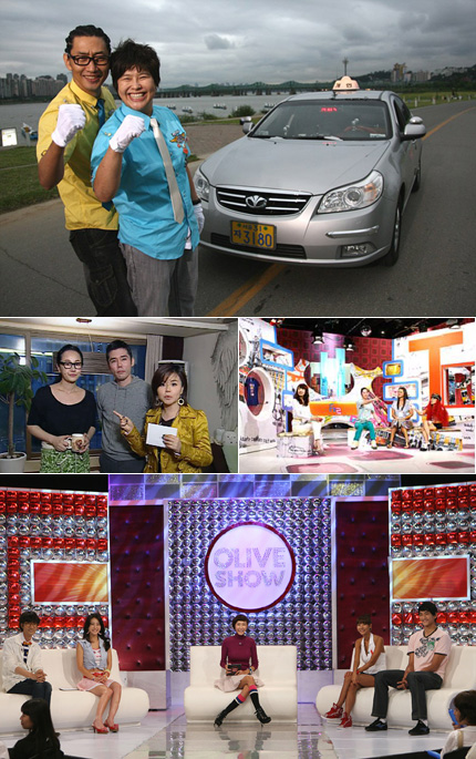 토크쇼: 텔레비전·라디오 따위에서 유명인이나 기타 다른 사람을 초대하여 대화를 나누는 프로그램 지상파에서 다양한 연령층에 걸쳐 공감대를 얻어온 ‘토크쇼’가 최근 들어 케이블에서 이색적인 형식으로 거듭나며 시청자들의 눈길을 끌고 있다. MC와 게스트가 스튜디오에 앉아 단순히 이야기꽃을 피우고 게임을 진행했던 과거의 정통 토크쇼와는 달리 요즘 토크쇼는 스타일과 버라이어티의 만남으로 MC가 시청자들의 멘토링 역할을 하기도 하고, MC들이 스튜디오를 떠나 현장으로 달려가는 생소한(?) 형식으로 프로그램을 보는 재미를 더하고 있다. 스타일과 정보 제공형 토크쇼의 만남 케이블채널 올리브의 ‘올리브쇼 바이 변정수’는 스타일과 버라이어티가 버무려진 토크쇼. 매일 밤 1시간씩 방송되는 ‘올리브쇼’는 스타와 관련된 주제 외에도 ‘20대에 1억 만들기’, ‘소개팅, 이렇게 하면 대성공’, ‘열살 어려 보이는 동안 메이크업’ 등 젊은 여성층에게 지침서가 될만한 비법들을 토크쇼 안에 풀어낸다. MC변정수는 완벽한 프로그램을 만들기 위해 자신의 모든 스타일 노하우를 털어놓을 정도로 열성적이라는 게 관계자의 평이다. 지난 10월 31일 시즌1 마지막 방송을 한 ‘올리브 쇼’는 조만간 시즌2를 런칭할 예정이다. Mnet ‘트랜드 리포트 필’은 각종 시상식에 참석하는 탤런트들의 의상과 최신 트랜드을 한눈에 볼 수 있는 프로그램이다. 각 시상식 레드 카펫과 포토월에 선 스타들 중 베스트 드레서, 워스트 드레서를 선정하여 그들 스타일을 되짚어보고 롤모델로 삼을 만한 스타일과 못내 아쉬운 스타일에 대해 이야기를 나눈다. 탤런트 최여진과 디자이너 하상백, 파티플래너 지미기, 가수에서 스타일리스트로 활약하고 있는 이윤정의 토크는 스타일 백과사전과 같은 유용한 패션 팁으로 고정시청자들을 확보했다는 평이다. 시즌2를 연출하고 있는 이선영PD는 시작 당시 “손에도 쥐지 못할 몇 백만 원 짜리 상품들만 나열하는 프로그램이 되진 않겠다. 불친절한 정보 대신, 대중들이 정말 궁금해 하는 알짜 정보를 제공하겠다”는 기획 의도를 밝힌 바 있다. 답답한 스튜디오 이제는 안녕~ 현장으로 달려가는 토크쇼 스튜디오에 둘러 앉아 진행되는 일반 토크쇼는 가라. MC들이 직접 현장으로 달려가는 토크쇼는 현장의 상황을 생동감 있게 전할 수 있다는 점에서 이색적이다. 대표적인 프로그램이 신개념 현장토크쇼를 표방하는 tvN ‘택시’. 개그맨 이영자와 악동 김창렬이 실제 택시기사가 되어 펼치는 로드 토크쇼다. 게스트들은 스튜디오를 벗어나 허심탄회하게 그들과 속 이야기를 나누며 때로는 눈물을 때로는 박장대소를 터뜨린다. 그 동안 ‘택시’를 지나쳐간 연예인만 해도 수십명. 국민 MC 유재석과 고 최진실을 비롯해 김원희, 김구라, 최화정, 조재현, 슈퍼주니어 등 수많은 연예인과 이용대, 최민호, 왕기춘, 장미란 등 베이징 올림픽 주역들 등이 프로그램에 출연했다. 스토리온에서 방송되는 ‘토크 앤 씨티2’ 또한 답답한 스튜디오를 거부한 채 핫트랜드를 전할 수 있는 장소에서 직접 진행한다. 탤런트 하유미와 개그맨 김효진, 크리에이티브 디렉터 우종완이 여성들의 패션, 뷰티, 라이프 스타일에 걸친 관심사에 대해 토크를 풀어놓는다. 이에 대해 방송채널사용자(PP) 업계 관계자는 “스타일 버라이어티 토크쇼, 현장토크쇼, 콘셉트 토크쇼와 같은 각종 이색토크쇼는 정통 토크쇼에 지루함을 느끼는 시청자들에게 신선한 재미로 다가가고 있다”며 “최근 지상파 방송에서 각종 리얼리티가 성황인 반면 케이블계에서는 이색토크쇼가 시청자들의 눈을 사로잡으며 해당 채널의 킬러 콘텐츠로 떠오르고 있다”고 설명했다. yu@osen.co.kr