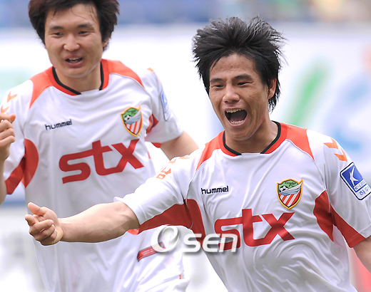 경남FC가 광주 상무의 공격을 잘 막아내며 FA컵 4강에 올랐다. 경남FC는 5일 경남 합천운동장에서 열린 2008 하나은행 FA컵 8강전 광주상무와 경기서는 전반 10분 김동찬이 결승골을 터트리며 1-0으로 승리하며 4강에 진출했다. 올 시즌 K리그서 최하위에 처진 광주는 FA컵서 반란을 일으키기 위해 공격의 고삐를 늦추지 않았다. 하지만 경남은 탄탄한 수비를 바탕으로 광주의 공격을 잘 막아내며 반격을 준비했다. 전반 10분 경남은 김동찬이 선취점을 뽑아냈다. 상대진영 아크 왼쪽을 돌파하던 인디오가 문전으로 올린 볼을 김동찬이 침착하게 오른발로 슈팅을 시도하며 광주의 골네트를 흔들며 1-0으로 앞섰다. 광주는 추가득점을 올리기 위해 박규선과 김명중이 활발한 플레이를 통해 반격을 노렸지만 쉽게 경남의 수비에 막혀 득점을 기록하지 못했다. 반면 경남은 김동찬과 서상민의 돌파로 추가점을 노렸지만 추가득점 없이 1-0으로 전반을 마쳤다. 상무는 후반서 이완과 강진욱이 오버래핑을 통해 문전의 박규선과 최재수에게 기회를 만들기 위해 노력했다. 하지만 밀집된 경남의 수비를 뚫기는 역부족이었고 이후 역습을 당하며 경기가 어려줘 졌다. 후반 15분 광주는 경남 수비진이 흔들리는 사이 수 차례 득점 찬스를 얻었지만 골 결정력 부족으로 기회를 살리지 못했다. 또 광주는 상대진영 아크 왼쪽에서 얻은 프리킥 찬스서 김명중이 직접 슈팅을 시도했지만 골대를 벗어났다. 광주의 공세를 끝나지 않았다. 전반 30분 김명중, 고슬기 그리고 김현승의 슈팅이 이어졌지만 골은 터지지 않았다. 9명의 선수가 공격에 가담했지만 이광석이 지키는 경남의 골문을 뚫지 못했다. 결국 광주는 경기종료 직전 공격의 핵인 박규선이 경고누적으로 퇴장당해 공격에 어려움을 겪으며 득점없이 경남에 승리를 내주고 말았다. 10bird@osen.co.kr ▶ '3연승' 경남, '뒤집기 PO행' 가능할까 ▶ '6위 도약' 조광래, "PO 진출 자신있다" ▶ '3파전' 6강 다툼, 일정상 어디가 유리?
