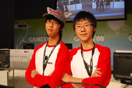 WCG2008서 처음 정식 종목으로 채택된 붉은 보석의 '컴온베이비'가 한국에 첫 금메달을 안겼다. 컴온베이비는 7일 저녁(한국시간) 독일 쾰른 메쎄 8번홀에서 열린 'WCG 2008 GF' 붉은보석 결승전서 일본의 해피스위트B팀을 2-0으로 제압하고 금메달을 거머쥐었다. 한국의 첫 금메달이자 이번 WCG2008 그랜드파이널 첫 금메달 획득이었다. 붉은 보석은 한국보다는 일본의 금메달이 예상됐던 종목. 총 4팀의 참가팀 중 일본 팀이 2 팀이나 포함될 정도로 일본내에서 인기가 높은 게임. 열 일곱 동갑내기인 강기표 김승률 두 선수는 지난 6일 치룬 풀리그 경기서도 전승을 거두더니 최종 결선서도 환상의 호흡으로 금메달을 낚아챘다. 컴온베이비팀의 활약으로 붉은 보석 금메달을 차지한 한국은 이번 WCG2008 그랜드파이널서 다른 국가들보다 한 발 앞서게 되며 역대 4번째 종합 우승을 향한 유리한 고지를 점령하게 됐다. scrapper@osen.co.kr 붉은보석 컴온베이비팀의 강기표(왼쪽), 김승률(오른쪽)./ICM 제공.