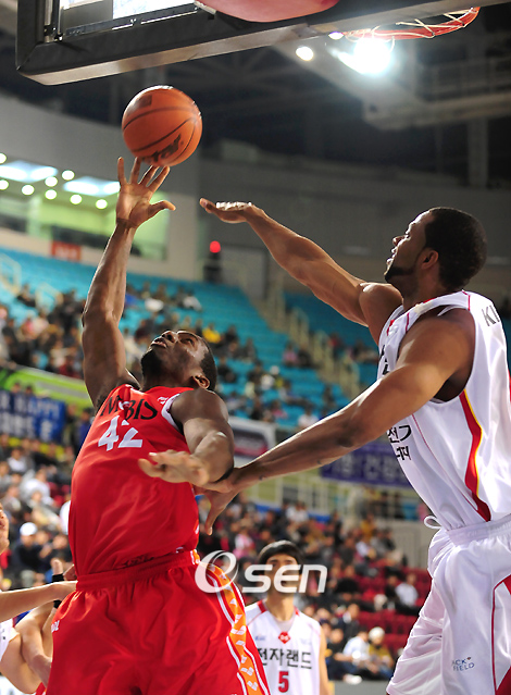 울산 모비스의 역동적인 파괴력이 최근 2연패를 끊는 동시에 '젊은 가드진'을 내세운 인천 전자랜드를 2연패로 몰아넣었다. 모비스는 8일 인천 삼산 월드 체육관에서 벌어진 2008~2009 동부 프로미 프로농구 전자랜드전서 25득점 9리바운드로 활약한 외국인 선수 브라이언 던스톤을 앞세워 94-88로 진땀승을 거뒀다. 모비스는 이날 승리로 2연패에서 탈출하며 시즌 전적 2승 2패를 기록한 반면 전자랜드는 개막 2연승 기세를 이어가지 못하고 2연패로 무너졌다. 2연승 후 1패를 당했던 전자랜드는 정병국-강병현-정영삼으로 이어진 젊은 가드진과 '득점 기계' 리카르도 포웰을 앞세운 공격 농구를 펼치고자 했다. 반면 모비스는 공격력이 좋은 2년차 장신 포워드 우승연을 스타팅 멤버에 포함시켜 전자랜드에 '맞불 작전'으로 나섰다. 1쿼터는 6,7분께 터진 정병국-정영삼-강병현의 연속 3점포 등에 힘입어 전자랜드가 25-22로 앞선 채 끝났다. 모비스는 종료 0.3초 전 터진 김효범의 사이드 3점포로 추격권에서 벗어나지 않은 채 역전의 꿈을 키워나갔다. 전자랜드 정영삼은 주특기인 돌파를 고수하기보다 외곽 찬스를 노리며 3점포 2개 포함 1쿼터서만 8점을 뽑아냈다. 모비스는 2쿼터 시작과 함께 던스톤의 2득점과 김효범의 3점포로 27-27 동점을 만든 뒤 3분 5초에 터진 김효범의 3점슛 덕택에 34-31로 리드를 잡았다. 4분 9초서는 골밑 돌파 후 재치있게 공을 넘긴 천대현의 패스를 '함던컨' 함지훈이 골밑슛으로 연결하며 39-31로 달아나기 시작했다. 2쿼터 중반 전자랜드는 주태수와 정영삼의 연속 2득점으로 추격의 발길을 멈추지 않았으나 모비스 또한 6분 55초 터진 김현중의 3점포로 46-36까지 달아났다. 전자랜드는 2쿼터서 베테랑 슈터 김성철을 투입했으나 7분 17초 동안 단 1어시스트에 그치며 무득점, 공세에 추진력을 더하지 못했다. 2쿼터 후반 김효범이 파울 3개가 되며 벤치에서 휴식을 취하는 사이 전자랜드는 주태수의 자유투 등을 묶어 39-48로 추격권에서 크게 벗어나지 않았다는 데에 만족해야 했다. 3쿼터에서는 함지훈의 움직임이 인상적이었다. 함지훈은 3쿼터 시작 후 54초께 김효범의 돌파를 이어받아 페인트 모션 후 골밑 득점에 성공했고 3분 30초서도 외곽에서 이어진 김현중의 패스를 안정된 훅슛으로 연결하며 점수 차를 63-44까지 벌려 놓았다. 여기에 5분 43초에는 빠른 슛타임으로 3점포까지 작렬하며 71-53을 만들었다. 모비스는 3쿼터에서만 10점을 쏟아부은 함지훈 덕택에 77-67로 3쿼터를 마쳤다. 전자랜드는 포웰이 3쿼터에서만 3점포 3개 포함 13점을 넣으며 분전했다는 데 위안을 삼고 4쿼터에 나섰다. 역전을 노리던 전자랜드는 4쿼터 정병국의 3점포와 포웰의 2득점으로 포문을 열며 72-77로 추격의 고삐를 당겼다. 특히 포웰은 수비 리바운드 후 상대편 골밑으로 성큼성큼 다가가 멋진 턴어라운드 득점으로 78-82의 귀중한 추격점을 따냈다. 여기에 전자랜드는 정병국의 3점슛이 림을 맞고 튕긴 뒤 빨려들어가는 행운의 득점으로 81-84까지 좁혀나갔다. 종료 3분 45초를 남기고 전자랜드는 정병국의 3점슛으로 87-88을 만들며 장내를 뜨겁게 달궜다. 반면 모비스는 던스톤-블랭슨에 김현중까지 파울 트러블에 걸린 상황서 더욱 궁지에 몰렸다. 전자랜드는 모비스의 움직임이 둔화된 틈을 타 종료 1분 43초 전 포웰이 천대현의 파울을 유도했고 자유투 2개 중 1구를 성공시키며 88-88 동점을 만들어냈다. 1분 6초를 남기고 던스톤의 2득점으로 90-88을 만든 모비스는 종료 27.9초 전 터진 던스톤의 원핸드 덩크로 92-88을 만들며 사실상 승리를 확정지었다. 전자랜드는 추격의 끈을 놓지 않았으나 막판 결정력 부재로 인해 2연패로 눈물 흘려야 했다. 종료 22초 전 포웰이 던진 레이업은 림을 타고 코트로 떨어지며 커다란 아쉬움을 남겼다. ■ 8일 전적 인천 전자랜드 88 (25-22 14-26 28-29 21-17) 94 울산 모비스 farinelli@osen.co.kr 3쿼터 모비스 던스톤이 전자랜드 리틀의 블로킹을 피해 리버스 레이업슛을 쏘고 있다./인천=손용호 기자spjj@osen.co.kr