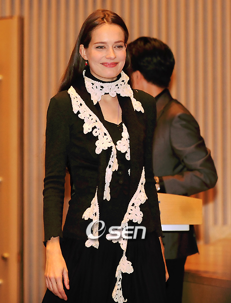 한독 수교 125주년을 기념해 SBS-BR이 공동 기획한 SBS 창사특집 드라마 '압록강은 흐른다'의 제작보고회가 10일 주연배우 나문희 최성호 우벽송 김여진 독일 배우 캄포스키 등이 참석한 가운데 SBS 목동사옥에서 열렸다. 이 드라마는 일제의 탄압을 피해 독일로 망명, 나치독일의 탄압 속에서도 따스한 인간애로 독일인을 감동시켰던 이미륵의 일대기를 통해 한국과 독일의 근 현대사를 재조명 했다. 극중에서 이미륵의 제자로 평생을 헌신한 여인 에바로 나오는 캄포스키가 밝게 웃으며 입장하고 있다./손용호 기자spjj@osen.co.kr