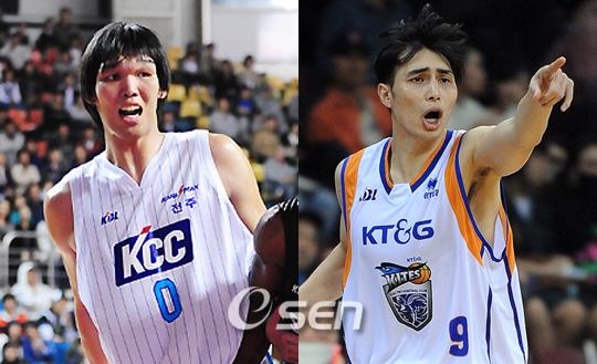 '골밑을 장악하는 팀이 승리한다' vs '농구는 신장이 아니라 심장으로 하는 것이다'. 하승진과 서장훈의 전주 KCC와 주희정의 안양 KT&G는 11일 전주 실내체육관에서 맞대결을 펼친다. 올 시즌 개막전서 각각 오리온스와 동부에 패한 뒤 4연승과 3연승을 달리며 시즌 초반 호조를 보이고 있는 양팀은 물러설 수 없는 대결을 펼칠 전망이다. 신인 드래프트서 1순위로 하승진(221cm)을 뽑아 서장훈(207cm)와 함께 최고의 높이를 구축한 KCC는 마이카 브랜드(207cm), 브라이언 하퍼(203cm) 그리고 강은식(200cm) 등 2m를 넘는 선수만 5명에 이른다. KCC는 고공 농구의 위력을 바탕으로 팀 리바운드(205개)에서 상대팀을 압도하고 있다. 리바운드 뿐 아니라 팀 어시스트에서도 1위(96개)에 올라 짜임새 있는 전력을 과시하고 있다. 올 시즌 합류한 하승진의 위력은 날이 갈수록 대단해지고 있다. 골밑에서 하승진이 단순히 손을 들고 서 있는 것만으로도 패스 경로가 차단될 정도로 상대에 어려움을 주기 때문이다. 주희정을 내세운 KT&G는 타의 추종을 불허하는 스피드로 연승행진을 벌이고 있다. 경기당 평균 9.75개의 어시스트를 배달하고 있는 주희정은 마퀸 챈들러와 캘빈 워너의 외국인 듀오와 양희종, 신제록, 김일두 등 속공 가담이 가능한 슈터들에게 빠른 패스연결을 통해 경기를 이끌고 있다. 2m가 되지 않는 챈들러와 워너는 각각 경기당 21.25점-9.75리바운드, 21.75점-6리바운드를 기록하며 주희정과 함께 공격 일선에서 활약하고 있다. 정반대의 장점을 지닌 양 팀의 대결서 어느 쪽이 우세를 보일지 관심을 끌고 있다. 10bird@osen.co.kr 하승진-주희정.