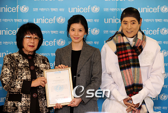 탤런트 이보영이 11일 오전 서울 창선동 유니세프한국위원회에서 유니세프카드의 홍보사절인 유니세프카드후견인에 공식 임명 됐다. 지난해 몽골을 방문해 봉사활동을 펼치기도 했던 그녀는 앞으로 어린이 생명을 구하는 유니세프카드를 대중에게 널리 알려 판매를 지원하는 홍보사절로 활동한다. 이보영이 박동은 유니세프한국위원회 사무총장으로 부터 임명장을 수여받고 앙드레김 친선대사와 포즈를 취하고 있다./김영민 기자ajyoung@osen.co,kr
