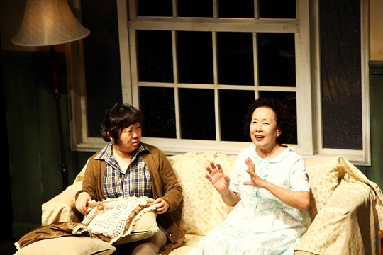 연극 한편으로 가족과의 대화를 이끌어 내는 작품이 있다. 가족애의 소중함을 잊고 사는 현대인들이 감동과 함께 숙연해 지는 시간이다. 연극 ‘잘자요, 엄마’, 1만 5000명의 모녀관객들에게 삶의 소중함을 되돌아보게 하고 가족 간의 소통을 호소했다. “그냥 산다는 게 재미가 있지 않아. 앞으로 더 나빠질까봐 걱정하는 것도 싫고….” 일상이 지루한 딸 ‘제시’. 평소와 같은 일상에서 무미건조한 목소리로 “엄마, 나 자살할거야”라고 이야기한다. 한가로운 저녁시간을 보내던 엄마 ‘델마’는 그 말을 무시했지만 시간이 흐르면서 제시의 결심이 농담이 아님을 느끼게 된다. 평생을 가족이기에 소통하기 힘들었고 일상이기에 잊고 있었던 그 무엇을 오늘밤 깨달아 간다. 그녀들의 일상에 파고든 ‘죽음’ 앞에서 늦은 소통은 서로 이해하기를 바란다. 서로 간의 이해는 억지스럽기까지 하고 이런 상황은 오래도록 풀지 못할 숙제로 남거나 더 깊은 슬픔만을 남겨 더욱 안타깝다. 아주 모진 딸로 비칠 수 있는 황정민(딸, 제시 역)은 평생 간질병과 이혼, 아들의 가출과 범죄로 고달픈 인생을 살아왔다. 간질병이 있어 아무것도 할 수 없었던 그녀다. 지긋지긋한 삶을 끝내는 것만은 자신이 선택하고 싶다고 말하는 제시, 그녀가 유일하게 선택한 것은 ‘자살’이었다. 그녀의 마음을 아주 이해 못하는 것은 아니지만 그래도 조금만 더 살아주었으면 간절히 바라는 관객들은 죽음 앞에 덤덤한 황정민을 바라보며 눈물을 흘렸다. 먹먹한 말투, 태연한 그 표정은 황정민이였기에 더 리얼했다. 상처를 참아내는 아슬아슬한 표정은 그 고통을 조금이나마 함께 느끼려는 관객을 끌어 들이고 눈물 흘리게 하는 원동력이다. “잘자요, 엄마” 일상에서의 저녁인사를 하며 뒤돌아서고 잠시 후 한발의 총성이 울린다. “네가 그토록 외로운 줄이야. 아가, 내 아가, 나를 용서해라. 난 네가 내 것인 줄 알았다.” 나문희(엄마, 델마 역)는 침착하게 슬픔을 극복하는 감동으로 관객들의 심금을 울렸다. 사랑스럽고 소녀 같은 나문희의 천진난만한 연기는 편안함과 동시에 오열하지 않는 더 큰 슬픔을 선사했다. ‘연극열전 2’ 여덟 번째 작품 ‘잘자요, 엄마’, 지난 8월 29일 공연 이래 관객들의 뜨거운 관심으로 2개월 연장 공연을 밝히고 한창 무대에 열기를 더하고 있다. 어렵다는 소극장 연극에서 1만 5000여 모녀관객을 끌어 모을 수 있었던 힘은 기본에 충실했던 배우들의 뛰어난 연기력이 한 몫 했다. “배우가 무대와 소통하고, 희곡과 소통하며, 관객과 소통하는 것이 연극의 가장 기본이다”고 말한 연극평론가의 "기본에 충실하라"는 말이 머리에 감돈다. ‘잘자요, 엄마’의 배우 황정민과 나문희는 기꺼이 자신들의 이름을 버리고 제시와 델마로 관객과의 소통을 시도했다. 죽음 앞에서 가족의 소통이 얼마나 절실한가를 이야기하는 그녀들의 소통은 일상의 가족을 잊고 살았던 관객들을 반성하게 했다. jin@osen.co.kr 연극 ‘잘자요, 엄마’ 공연 장면.