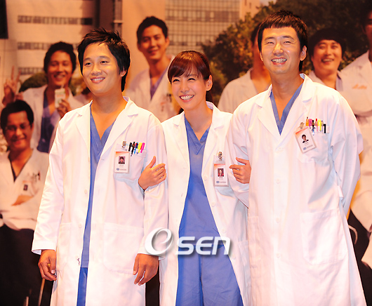 메디컬 드라마의 효시였던'종합병원'이 시즌 2로 새로이 시청자를 찾아온다. MBC는 1994년 공전의 히트를 기록했던 드라마 '종합병원'을 수목 미니시리즈 '종합병원2'로 새롭게 제작, 12일 강남 성모병원에서 주연배우 김정은 차태현 이재룡 이종원 도지원 등 이 참석한 가운데 제작발표회를 가졌다. 차태현 김정은 류승수가 포토타임을 갖고 있다./손용호 기자spjj@osen.co.kr