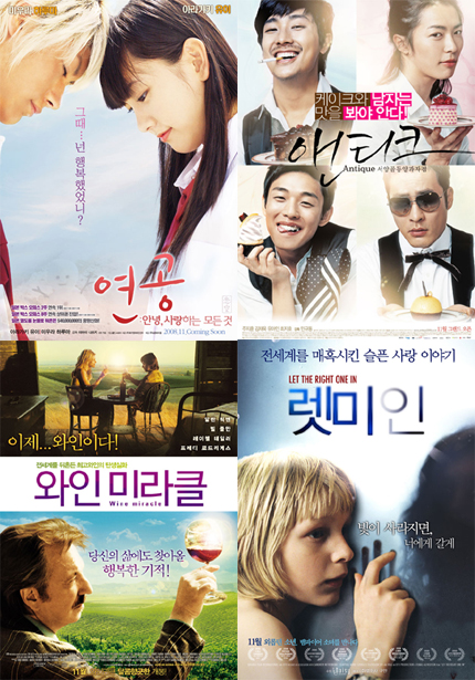 대학수학능력시험이 끝나고 열혈 영화 마니아들이 달라가는 곳은 극장. 영화에 굶주렸던 수험생들을 겨냥해 13일 개봉을 하는 영화들을 알아봤다. 영화 ‘연공: 안녕, 사랑하는 모든 것’(이하 연공)이 13일 개봉한다. ‘연공’은 평범한 여고생 미카(아라가기 유이 분)가 도서관에서 잃어버린 핸드폰을 계기로 학교 킹카인 히로(미우라 하루마 분)와 운명적인 사랑에 빠지게 되면서 벌어지는 이야기를 담은 청춘 로맨스 물이다. 현재 메가박스에서 열리고 있는 ‘메가박스 일본 영화제’에서 ‘플레이 플레이 소녀’ ‘와루보로’ 등 두 편의 영화에 출연하는 일본 최고의 청춘 스타 아라가기 유이와 ‘나오코’로 얼굴을 알린 미우라 하루마가 열연한다. ‘연공’은 일본에서는 1200만 명의 눈물샘을 자극한 핸드폰 소설을 원작으로 한 영화다. 동명의 만화를 원작으로 한 ‘서양골동양과자점 앤티크’도 13일 개봉한다. 주지훈 김재욱 유아인 최지호 네 꽃미남이 등장해 소녀 팬들의 가슴을 설레게 한다. 케이크와 함께 관객들의 보는 눈을 즐겁게 해줄 코믹 드라마. 왕따 소년과 뱀파이어 소녀의 안타까운 사랑을 담은 ‘렛 미 인’도 같은 날 개봉한다. 부천국제판타스틱 영화제, 스웨덴 예테보리 영화제, 판타시아 영화제 등에서 최우수 작품상을 수상하며 전세계적으로 ‘2008 최고의 영화’라는 찬사를 받았다. 최고의 와인을 만들어 파산 직전의 농장을 구하려는 사람들의 열정을 그린 ‘와인 미라클’ 도 13일에 개봉한다. 캘리포니아 포도농장에서 만들어진 지상 최고 와인의 탄생 실화를 바탕으로 한 영화다. crystal@osen.co.kr