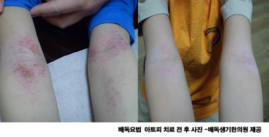 “이 지긋지긋한 아토피만 없앨 수 있다면 뭐든 하고 싶어요” 아토피를 앓는 자녀를 둔 부모들은 늘 이렇게 말한다. 또 이들은 대부분 아토피에 좋다는 여러 치료법들이나 민간요법을 끊임없이 시도해 오고 있다고 말한다. 3년째 아토피로 고생하고 있는 5살 윤주엄마 역시 마찬가지 이다. 아토피가 무섭다고 생각했지만 온 가족에게 이렇게까지 큰 고통이 될지는 몰랐다고. 특히 이런 저런 방법을 써도 쉽게 낫지 않고 쉽게 재발되는 질환의 특성상 절망감은 더 크다고 한다. 아토피 왜 치료하기 어렵나? 아토피는 한번 시작되면 좀처럼 호전되지 않을 뿐 아니라 고질적으로 재발되지 질환이다. 또한 가려움과 통증은 그야말로 겪어 보지 못한 이들은 절대 알 수 없는 고통이라고 한다. 더 큰 문제는 아토피가 주로 어린아이들에게 생긴다는 것이다. 때문에 아토피를 앓는 자녀를 둔 부모들은 ‘어떻게 하면 이 지긋지긋한 질환에서 벗어날 수 있을지, 우리 아이를 고통에서 벗어나게 할 수 있을지’에 늘 전전긍긍한다. 흔히 아토피를 두고 21세기 신종 질환, 특히 환경오염과 먹을거리, 각종 유해환경에서 오는 질환으로 인식하고 있다. 아토피의 치료가 어려운 것은 실제 뚜렷한 원인이 밝혀지지 않았기 때문이다. 그러나 아토피는 분명 불치병이 아니다. 다만 약물치료와 더불어 환경적인 요인 등을 다양하게 개선해주는 복합적인 치료와 관리가 필요한 질환이라는 인식이 중요하다다. 따라서 고질적인 질환인 만큼 꾸준하고 체계적인 치료가 필요하다. 여기에 더불어 아토피 질환에 대한 바른 인식도 중요하다. 배독생기한의원 천안점 한제근 원장은 “만성적인 아토피 질환을 가진 환자들은 대부분 초기 피부질환이 생겼을 때 잘못된 관리를 하는 경우가 흔하다. 초기에 제대로 치료가 이루어지지 않은 상태가 계속 되면서 기혈의 정체가 풀어지지 않고 홍종이나 각질이 심각해지거나 가려움이 반복되는 아토피 특유의 피부반응이 생기는 것이다”고 말한다. 특히 초기 피부질환 치료를 위해 사용하는 스테로이드에 주목할 필요가 있다. 계속되는 스테로이드 치료에 자칫 피부 자체의 면역력이 떨어지고 중독이 생길 수 있기 때문이다. 또한 민간요법에 의지한 잘못된 치료와 일상 관리 등도 문제가 될 수 있다. 따라서 피부질환이 생긴 경우 섣부른 치료는 반드시 금물이다. 아토피 치료는 단순히 피부상태를 호전 시키는 치료에 앞서 근본적인 치료가 우선되어야 하기 때문이다. 아토피 치료에서 가장 우선시 되는 것은 스테로이드 같은 약물의 과다 사용으로 정체된 기혈을 풀어주는 것이다. 스테로이드 중독은 모세혈관을 손상시키는 주요 원인이 되기도 한다. 따라서 정체되어 있는 기혈을 충분히 풀어주고 손상된 피부와 혈관조직을 재생시켜주는 것이 아토피 치료의 핵심이 되어야 한다. 아토피 치료, 배독요법으로 말끔하게 허약과 기혈의 정체를 총체적으로 해결하기 위해 고안된 치료법이 바로 배독요법이다. 이는 기존의 한약요법과 더불어 식이, 운동, 목욕, 외용요법 등 허약해진 인체를 보강과 손상된 피부와 혈관조직을 재생하고, 스테로이드로 인한 기혈의 정체반응을 체계적으로 치료해 주는 방법이다. 기존 한의원의 아토피 치료는 주로 한약과 침구물리치료에 많은 부분을 의존하고 있는 것이 사실이다. 하지만 실제 식이요법과 더불어 운동과 목욕요법 같은 환경적인 부분이 개선되어야 인체의 허약이 제대로 치료되고 기혈의 정체도 빨리 풀 수 있다. 배독한의원 천안점 윤정제 원장은 “목욕요법은 온열요법과 수(水)치료법이 대표적이다. 온열요법은 더운 열기로 기혈의 정체를 풀어주고 땀의 배출을 촉진하는 방법, 수 치료법은 온수로는 피부와 조직을 이완하여 순환력을 높이고, 냉수로 피부의 국소적인 염증을 제어하는 방법이다”고 말한다. 온열요법은 대개 찜질방이나 사우나와 같이 고열을 이용한 치료법, 수 치료법은 온수와 냉수를 이용한 치료법이다. 또한 온수치료 시에는 다양한 약재를 첨가해 주는 것도 효과적이다. 물론 환자의 상태에 따라 시간이나 강도를 달리해야 한다. 대개 중증의 아토피 환자인 경우 하루 5-6시간이상 치료일정에 따라서 시행하는 것이 빠른 치료에 효과적이다. 더불어 환자에게 적당한 운동요법 역시 땀을 내고 기혈을 순환시키는데 탁월한 효과를 낼 수 있다. 목욕과 운동 요법은 약물 치료와는 달리 환자와 가족들이 적극적으로 동참하고 얼마나 꾸준히 노력하느냐에 따라 효과가 달라지는 치료법이다. 한제근 원장은 “ 아토피 치료에 있어서는 단순히 병원이나 한의원에서의 약물 치료에만 의존하기 보다는 그동안 잘못된 생활습관이나 환경을 바꿔주는 것 역시 중요하다”고 강조한다. [OSEN=생활경제팀]osenstar@osen.co.kr