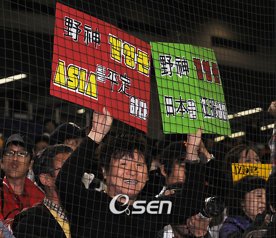 '2008 아시아시리즈' 한국 대표 SK 와이번스와 일본 대표 세이부 라이온즈의 경기가 13일 일본 도쿄돔 구장에서 벌어졌다. 이 날 경기에서 SK는 이재원의 결승투런포와 철벽 불펜진의 이어던지기가 빛을 발해 4-3의 짜릿한 역전승을 거뒀다. 경기를 마치고 SK 팬이 SK 김성근 감독을 향해 플래카드를 들어보이고 있다./도쿄돔=민경훈 기자 rumi@osen.co.kr