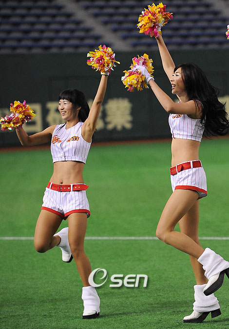 '2008 아시아시리즈' 한국 대표 SK 와이번스와 중국 대표 톈진 라이온스 경기가 14일 일본 도쿄돔 구장에서 벌어졌다. SK 치어리더들이 그라운드에서 공연을 펼치고 있다./도쿄돔=민경훈 기자 rumi@osen.co.kr