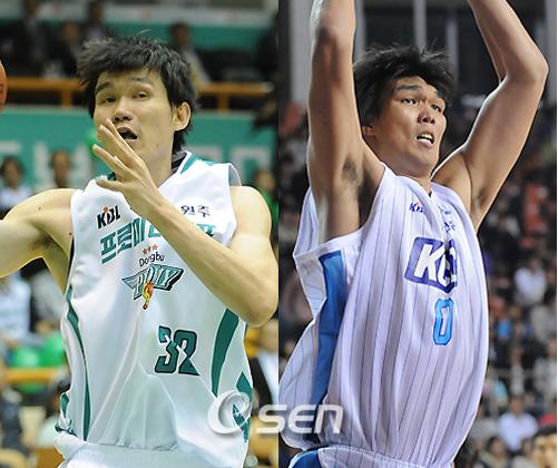 김주성(29, 205cm)과 하승진(23, 221cm) 두 거인의 첫 맞대결이 펼쳐진다. 올 시즌 유력한 우승 후보로 꼽히는 원주 동부와 전주 KCC가 오는 15일 원주 치악체육관에서 만난다. 나란히 5승 1패를 기록하며 공동 1위를 질주하고 있는 두 팀의 승자가 1라운드 선두를 바라볼 수 있다는 점에서 각오가 매섭다. 이들의 대결에서 관심을 모으는 것은 역시 김주성과 하승진의 맞대결이다. 지금까지 외국인 선수가 한 명밖에 뛸 수 없는 2, 3쿼터에서 한 수 위의 기량을 과시했던 김주성과 KBL의 신장 제한을 풀어 버린 하승진의 대결은 이날 승리를 결정짓는 변수가 될 가능성이 높다. 일단 유리한 고지를 차지한 쪽은 동부다. 비록 김주성이 아직 완벽한 컨디션은 아니지만 매 경기 35분가량을 뛰며 평균 16.8점의 득점과 6.3개의 리바운드를 걷어 올리며 여전한 기량을 과시하고 있을 뿐만 아니라 레지 오코사(204cm)라는 든든한 센터가 버티고 있기 때문이다. 여기에 김주성이라는 빠른 빅맨의 존재는 동부의 공격에 다양성을 부여한다. 최단신 외국인선수 웬델 화이트(194.3cm)가 공격 지향적인 움직임을 보일 수 있는 이유가 여기에 있다. 표명일, 강대협, 손규완, 이세범 등을 상황에 따라 투입하며 얼마든지 변화를 줄 수 있다는 점에서 동부는 역시 우승 후보라는 평가를 받고 있다. 이들의 빠른 스피드를 활용한 외곽슛은 KCC가 신경 써야 할 부분이다. 반면 KCC는 확실한 높이를 앞세워 동부를 공략할 전망이다. 하승진 외에도 마이카 브랜드(207cm), 브라이언 하퍼(203.4cm), 서장훈(207cm) 등이 포진한 장신 군단의 대명사 KCC는 리바운드에서 절대적인 강세를 보이고 있다. 최근 가드 포지션서 활약하고 있는 정훈(197cm)까지 코트에 나서면 KCC의 골밑 장악력은 동부도 두려워해야 할 정도다. 높이를 추구한다고 해서 스피드가 부족한 것도 아니다. KT&G, 삼성 등 빠른 농구를 추구하는 팀들에 비하면 다소 뒤지지만 평균 3.67개(5위)의 속공을 기록하는 등 전술의 균형을 맞췄다. 다만 아쉬운 것이 있다면 하승진의 고민으로 꼽히는 자유투 성공률. 15개를 던져 단 2개만을 성공한 하승진을 과연 승부처에서 기용할 수 있을지는 미지수다. stylelomo@osen.co.kr