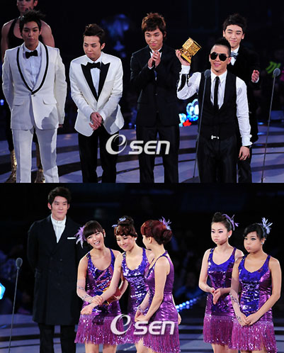 빅뱅, 원더걸스가 각각 Mnet KM 뮤직페스티벌(이하 'MKMF') 남녀 그룹상을 수상했다. 2008 가요계 별들이 총출동하는 MKMF 10주년 행사가 11월 15일 오후 7시 서울 잠실 실내체육관에서 화려한 막을 올렸다. 원더걸스는 '노바디'로 여자그룹상을 수상했다. 시상은 2008 베이징 올림픽 금메달리스트 수영선수 박태환이 했다. 여자 그룹상을 수상한 원더걸스는 "너무 너무 감사하다. JYP 식구들 정말 고맙다. 언제나 여러분들의 사랑을 받고 좀 더 큰 무대로 나가는 원더걸스가 되겠다. 앞으로도 대한민국을 대표하는 여자가수로서 많은 노래를 들려줄 것을 약속한다"고 수상 소감을 밝혔다. 빅뱅은 '하루하루'로 남자 그룹상을 받았다. 수상 후 빅뱅 대성은 SBS '일요일이 좋다, 패밀리가 떴다'에 함께 출연하고 있고 이날 시상자로 나선 이천희와 뜨거운 포옹을 나눴다. 빅뱅은 "너무 감사하다. 앞으로 우리가 보답할 길은 보다 더 좋은 노래와 무대를 보여주는 것일 것이다. 열심히 하겠다"고 말했다. 여자 그룹상 후보로는 브라운 아이드 걸스(LOVE), 소녀시대(키싱유), 씨야(핫걸), 쥬얼리(원 모어 타임)가 올랐고 남자 그룹상 후보로는 동방신기(주문), 에픽하이(원), FT아일랜드(사랑후에), SG워너비(라라라)가 올라 경합을 벌였다. 원더걸스는 뮤직비디오 작품상을 수상하기도 했다. MKMF 10주년 행사는 Mnet, KM, tvN, 올리브는 물론 일본 내 M-on TV와 엠넷재팬, 중국 내 천진위시와 포털 사이트 소후닷컴을 통해 방송되고 한, 중, 일 동시 3원 생방송으로 진행된다. 지난해 10월 16일부터 올 10월 14일까지 발표한 음반 및 음원을 기준으로 3개의 대상(올해의 노래상, 올해의 앨범상, 올해의 가수상) 등 총 30개 부문에 대해 시상한다. happy@osen.co.kr 윤민호 기자 ymh@osen.co.kr