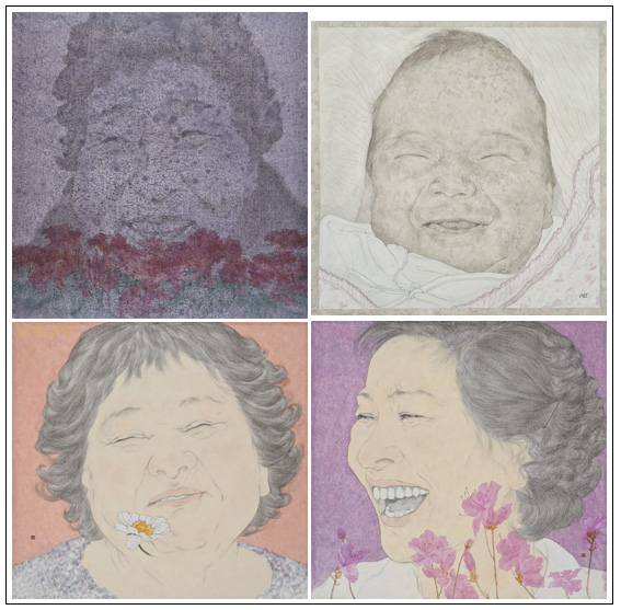 웃음의 사회학을 화폭에 실현하는 화가 임서령의 6번째 개인전이 열린다. ‘웃음 전도사’답게 ‘웃는 여잔 다 예뻐’라는 타이틀이 걸렸고 오는 19일부터 25일까지 서울 종로구 영아트갤러리에서 열린다. 이번 전시에 나온 임서령의 작품들은 웃는 얼굴, 특히 여성의 웃는 얼굴에서 일련의 사회학적 의미를 찾고자 하고 있다. 근래 들어 임서령이 웃음에 천착하게 된 계기가 재미 있다. 어느 날 주차장에 주차된 차량에서 차창 가득 꽂혀 있는 안마시술소의 선전 딱지들을 보게 된다. 그 속에 있는 여인(모델)들은 저마다 자태를 뽐내며 환하게 웃고 있었다. 물론 그 웃음은 지극히 연출된 것이고 딱지 속 모델은 자신의 사진이 그런 용도로 사용될 줄도 몰랐겠지만 작가는 이를 보고 ‘웃는 여자는 다 예쁘다’고 느낀다. 그리고 다양한 웃음의 세계에 주목하게 된다. 작가는 특히 삶의 연륜이 묻어나는 웃음, 시간과 세월이 만들어준 웃음에 마음을 뺏기게 된다. 노인정이나 양로원의 할머니들, 때로는 길을 가다 우연히 마주친 할머니들에게서 그런 웃음을 찾아 채집하고 또 화폭에 옮기는 작업을 했다. 임서령의 작품 속 할머니들의 웃음(때로는 미소)들은 삶의 무한한 포용력을 가능하게 했다. 미술평론가 고충환 씨의 표현에 의하면 임서령의 작품 속 할머니들은 “당장이라도 수다를 동반할 것 같고 주저리주저리 이야기 보따리도 풀어놓을 듯”하다. 임서령은 전통적인 인물화의 작화방식을 계승하고 있다. 할머니의 초상을 연필로 세세하게 그린 후 특유의 갈필로 그림 그대로를 옮겨 그린다. 밑그림을 연필로 충실하게 모사하고 있다는 점에서 데생처럼 보이지만 사실은 철저하게 한지에 먹 선으로만 그려낸 그림이다. TV나 영화, 광고에서 친근한 유명 연예인의 웃음도 임서령 작품에 자주 등장하는 소재들이다. 이들의 웃음을 통해 삶을 흉내 내고 모방하고 연기하는 가상적인 삶을 그렸다. 웃음이 인상적인 배우들, 예를 들면 강부자 김혜자 장미희 등의 얼굴이 단골 손님이다. 이런 일련의 과정들을 정리한 고충환 평론가는 “임서령의 그림 속 초상들은 작가 자신의 초상이며 우리 모두의 초상이기도 하다”고 의미를 부여하고 있다. 이화여대 미술대학 동양화과를 졸업하고 이화여대 일반대학원 동양화과 박사과정을 밟고 있는 임서령은 현재 목원대학교 강의전임교수로 재직 중이다. 1996년 첫 개인전을 시작해 이번이 6번째 개인전이고 서울국제아트페어 부스개인전, 뉴욕아트엑스포 등 다수의 해외 아트페어 참여 경력을 갖고 있다. 또한 ‘대한민국 미술대전 입선 2회’ ‘후소회 공모전 특선’ ‘동아미술제 특선’ ‘KAnet 97 미술대상전 특선’ 등의 수상 경력을 자랑한다. 100c@osen.co.kr 임서령 작가의 작품들.