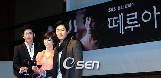 SBS 월화 드라마 '떼루아'(김영민 연출, 황성구 극본)의 제작발표회가 18일 오후 서울 삼성동 그랜드 인터콘티넨탈호텔에서 열렸다. 와인 레스토랑‘떼루아'를 배경으로 한국의 전통주와 프랑스의 와인을 둘러싼 주인공들의 갈등과 로맨스를 다룬 드라마로 오는 12월 첫방송 예정이다. 기태영 한혜진 김주혁이 와인을 들고 포토타임을 갖고 있다./윤민호 기자ymh@osen.co.kr