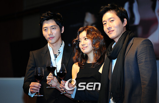 SBS 월화 드라마 '떼루아'(황성구 극본, 김영민 연출)의 제작발표회가 18일 오후 서울 삼성동 그랜드 인터콘티넨탈호텔에서 열렸다. 와인 레스토랑‘떼루아'를 배경으로 한국의 전통주와 프랑스의 와인을 둘러싼 주인공들의 갈등과 로맨스를 다룬 드라마로 오는 12월 첫방송 예정이다. 기태영 유선 김주혁이 와인을 들고 포토타임을 갖고 있다./윤민호 기자ymh@osen.co.kr