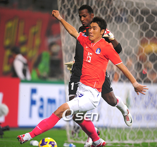 사우디아라비아전에 타겟맨으로 나선 정성훈(29, 부산)이 슈팅 마무리 미흡으로 2% 부족한 경기를 펼쳤다. 정성훈은 20일(이하 한국시간) 새벽 사우디아라비아 리야드의 킹 파하드 인터내셔널 스타디움에서 열린 2010 남아공월드컵 아시아지역 최종예선 B조 3차전에 이근호(23, 대구)와 함께 투톱으로 선발 출장했다. 한국은 후반 31분 이근호의 선제골과 추가시간에 터진 박주영의 중거리슛으로 2-0으로 승리, 승점 7점으로 B조 선두로 올라섰다. 또한 사우디전 19년 무승 징크스도 벗어났다. K-리그에서 맹활약하며 UAE와 최종예선 2차전 전을 앞두고 허정무 감독의 부름을 받고 첫 국가대표 유니폼을 입은 정성훈은 A매치 4번째 경기인 사우디전에서 타겟맨 역할 수행을 위해 부지런히 뛰어다녔다. 하지만 역시 골망을 흔들지 못하며 A매치 데뷔골은 다음 경기로 미뤄야 했다. 전반 26분에 정성훈은 왼쪽 측면에서 박지성이 가로채기에 이은 왼발로 올려준 크로스를 짧게 잘라 들어가면서 오른발을 갖다댔다. 하지만 슈팅은 아쉽게 골키퍼에 막히면서 득점으로 연결되지 못했다. 전반 39분 역시 프리킥 찬스서 정성훈은 수비수를 순간적으로 따돌리며 슈팅, 옆그물을 맞히는 등 경쾌한 몸놀림을 보였다. 전반서 수비에 중점을 둔 한국으로서는 정성훈, 이근호의 움직임에 의존했고 정성훈은 자신에게 온 찬스를 슈팅으로 연결하며 좋은 모습을 보였다. 하지만 후반 들어 다소 발에 힘이 들어가면 중거리슈팅이 높이 뜨기도 했던 정성훈은 후반 28분 박주영(23, AS모나코)과 교체됐다. 정성훈으로서는 2%가 아쉬운 사우디전이었다. 정성훈은 데뷔골에 대한 부담감을 떨쳐야만 K-리그에서 보여준 활약상이 재현될 것으로 보인다. 7rhdwn@osen.co.kr
