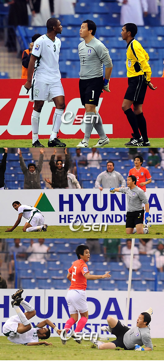 “어린 선수들이 자기 기량을 발휘할 수 있도록 돕는 것이 내 역할이라고 생각했다". 대표팀 최고참 골키퍼 이운재(35)의 노련함이 빛났다. 허정무 감독이 왜 정성룡이 아닌 이운재에게 사우디아라비아전 골문을 맡겼는지 알 수 있는 대목이었다. 이운재는 20일(이하 한국시간) 새벽 사우디아라비아 리야드 킹 파야드 인터내셔널 스타디움에서 열린 사우디아라비아와의 2010 남아공 월드컵 아시아지역 최종 예선 B조 3차전에서 탄탄한 선방과 노련한 지휘로 한국의 2-0 승리를 이끌었다. 이운재는 전후반 90분 내내 노련한 움직임을 선보였다. 19년 동안 단 한 번도 이기지 못한 사우디아라비아를 반드시 이겨야 한다는 절박함과 우리에게는 익숙치 않은 사우디아라비아 특유의 응원 속에 다른 선수들이 흔들렸음에도 불구하고 이운재는 자신의 자리를 지켰다. 초반 사우디아라비아의 거센 공세에 위기를 맞이했음에도 불구하고 한국이 무실점으로 전반을 마칠 수 있었던 데는 이운재의 노련한 지휘가 주효했다. 그러나 이운재의 노련함이 더욱 빛난 것은 전반이 아닌 후반이었다. 이운재는 후반 13분 사우디아라비아의 역습 상황에서 하자지에게 허용한 일대일 찬스에서 태클로 페널티킥을 내주는 듯했다. 그러나 이운재는 페널티킥이 아니라는 듯 번쩍 손을 들었고 주심은 하자지의 시뮬레이션을 지적하며 퇴장을 선언했다. 전반 이미 김정우에게 거친 파울을 범하며 경고를 받았던 하자지로서는 악몽이었고 사우디아라비아의 역습에 여러 차례 위기를 맞았던 한국이 완연한 주도권을 손에 쥐는 순간이었다. stylelomo@osen.co.kr 리야드=손용호 기자 spjj@osen.co.kr