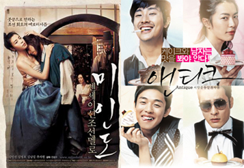 2008년 늦가을 극장가의 특이 상황은? 여름에 자주 나타하는 한국영화 쌍끌이가 쌀쌀한 날씨를 후끈하게 덥히고 있다는 사실이다. 돌풍의 주역은 팩션 사극멜로 '미인도'와 트렌드 코미디 '서양골동양과자점 앤티크'다. '한반도'-'괴물'과 '디워'-'화려한 휴가' 등 블록버스터 조합으로 탄생되던 한국영화 쌍끌이가 이번에는 제작비 등 규모면에서 작지만 내실있는 작품 두 편으로 성공을 거둔 것도 영화 관계자들의 시선을 끌고 있다. 지난 주말 개봉해 박스오피스 1, 3위를 차지하며 흥행 돌풍을 이끌었던 '앤티크'와 '미인도', 두 영화는 이번 주말에도 예매율, 관객 인지도, 입소문 등 각종 흥행지표에서 파란불을 받았다. 쌀쌀한 날씨를 잊게하는 최루성 멜로 라인에 화끈한 노출, 정사신을 곁들인 '미인도'가 성인층의 지지를 받고 있다면 꽃미남들의 동성애를 진하지 않게 그린 '앤티크'는 젋은 여자층은 물론이고 남학생 사이에서도 관심을 모으는 중이다. 영화진흥위원회 집계에 따르면 지난 주 조선시대 센세이션 에로티시즘을 표방하는 ‘미인도’는 48만 7326명을 동원하며 정상에 올랐고 22번째 본드 시리즈인 ‘007 퀀텀 오브 솔러스’가 39만 113명 관객으로 2위를 차지했다. 이어 대입 수능일인 13일에만 15만명을 불러모았던 ‘앤티크’가 007의 뒤를 바짝 추격하며 33만 2751명을 기록했다. 뚜렷한 외화 개봉작 등이 눈에 띄지않는 가운데 이번 주말 극장가에서 관객 입소문을 이어가는 영화도 ‘미인도’와 ‘앤티크’가 꼽힌다. 천재화가 신윤복 붐을 타고 있는 ‘미인도’는 김민선과 김남길의 파격적인 베드신과 노출, 아름다운 영상미가 강점. 주지훈 유아인 최지호 김재욱 등 꽃미남 F4의 향연 '앤티크'는 최근 흥행 코드로 떠오른 동성애를 전혀 부담스럽지 않게 코믹한 웃음으로 풀어낸 게 호평을 사고 있다. mcgwriel@osen.co.kr