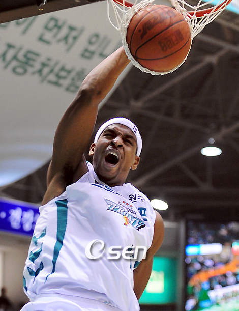 원주 동부가 서울 SK를 안방에서 꺾으며 선두 자리를 굳게 지켰다. 동부는 21일 원주 치악 체육관서 벌어진 2008~2009 동부 프로미 프로농구 SK전서 37득점 26리바운드를 합작한 웬델 화이트(21득점 12리바운드)-레지 오코사(16득점 14리바운드)를 앞세워 75-63으로 승리했다. 선두(7승 2패, 21일 현재)동부는 이날 승리로 연승 행진 재개를 위해 박차를 가했다. 반면 SK는 2연패에 빠지고 말았다. 1,2쿼터는 잦은 턴오버와 저조한 슛 성공률 속에서 제공권을 장악한 동부의 리드로 끝났다. 특히 오코사는 1,2쿼터서만 12득점 7리바운드를 기록하며 상대 골밑을 유린했다. SK는 부상에서 복귀한 야전 사령관 김태술을 투입해 원활한 볼배급을 노렸으나 김태술은 지난해만한 공격력을 보여주지 못하며 아쉬움을 비췄다. 전반을 37-30으로 앞선 동부는 3쿼터서도 김주성을 앞세워 54-45로 리드한 채 끝냈다. 이날 17득점 7리바운드를 기록한 김주성은 프로 7년차의 경험을 앞세워 신인 김민수를 상대로 한 수 위의 기량을 선보이며 최고 파워포워드의 기량을 과시했다. 4쿼터 SK는 김태술을 중심으로 점차 안정된 모습을 보여주며 역전을 노렸으나 동부 또한 포워드 웬델 화이트를 앞세우며 추격의 손길을 뿌리쳤다. SK는 막판까지 추격의 고삐를 당기는 듯 했으나 종료 48초 전 신장 대비 스피드가 좋은 김민수가 8득점 4리바운드에 그친 채 5반칙으로 물러나며 패배를 지켜봐야 했다. ■ 21일 전적 ▲ 원주 원주 동부 75 (24-19 14-11 17-15 21-18) 63 서울 SK farinelli@osen.co.kr 웬델 화이트.