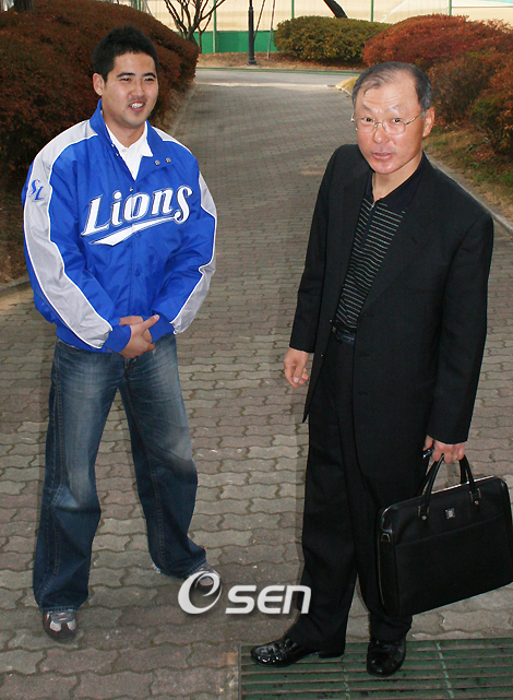[OSEN=김대호 객원기자] '삼성 대 반 삼성' 구도가 형성되는 것인가. 지난 일주일 동안 야구계를 뜨겁게 달궜던 장원삼 트레이드 파문은 21일 신상우 한국야구위원회(KBO) 총재의 불가 판정으로 일단락됐다. 이번 사태의 핵심은 한 마디로 '공룡구단' 삼성과 6개 구단의 힘겨루기였다. 결과는 6개 구단 연합세력의 판정승이었다. 삼성과 히어로즈 등 트레이드 당사자를 제외한 6개 구단이 일치단결해 한 목소리를 낸 것은 매우 이례적인 일이다. 사안의 중대성도 크지만 삼성의 일방독주를 견제하려는 심리가 공감대를 이뤘기 때문이다. 야구계에서는 이를 계기로 일본의 '요미우리 대 반 요미우리'와 같은 '삼성 대 반 삼성' 기류가 이뤄지는 것 아니냐는 섣부른 예측이 나오고 있다. 사실 삼성은 현대가 사라진 뒤 국내 프로야구 시장에서 유일한 '큰 손'이다. LG가 올 겨울 FA(자유계약) 시장에 뛰어들어 자금력을 자랑하고 있지만 삼성과 1대1로 맞서 이긴 적은 없다. 다른 구단들이 경계하고 있는 것도 바로 이 점이다. 삼성은 지난 1998년 쌍방울로부터 김현욱 김기태를 받으면서 현금 20억 원을 주는 트레이드를 한 이후 10년 만에 현금 트레이드 카드를 썼다. 삼성에서 '현금'을 풀기 시작할 경우 여건상 다른 구단에서 당해낼 재간이 없다. 특히 히어로즈 같이 재정적으로 열악한 구단이 있을 경우엔 삼성의 물량공세에 허물어질 수밖에 없다. 이번 장원삼 트레이드 파문을 두고 "만일 삼성이 아니고 다른 구단에서 현금 트레이드를 했어도 이렇게 벌떼처럼 들고 일어났을 지 의문이다"는 한 삼성 관계자의 말이 이 같은 상황을 잘 대변해 주고 있다. 삼성은 1996년 현대가 프로야구에 참여하기 전까지만 해도 다른 7개 구단과 동업자로서 보조를 맞추며 최소한 돈으로 선수를 빼가는 일은 하지 않았다. 기껏해야 1992년 양준혁을 영입하기 위해 편법으로 입대시키거나 롯데 연고선수인 최창양을 스카우트 하기위해 미국행 뒤 역수입하는 정도였다. 그러나 현대가 들어오면서 상황은 달라졌다. '재계 라이벌' 현대에서 무차별 선수영입에 나서자 삼성도 뒷짐만 지고 있을 수 없다고 판단, 맞불을 지피기 시작했다. IMF가 터지고 현대마저 공중 분해된 지금, 다시 삼성에서 '악마의 유혹'과도 같은 현금을 뽑아든 것을 다른 구단에선 이번 사태와 상관없이 매우 위태롭게 보고 있다. 지난 2년 사이 전력의 하향세를 보이고 있는 삼성이 또 어떤 기발한 방법으로 선수를 빼내갈 지 예측할 수 없다는 분위기다. 일본 프로야구도 요미우리의 선수 빼내가기가 발단이 돼 센트럴리그와 퍼시픽리그로 나눠졌다. 실제 신상우 총재가 트레이드 승인으로 결정했을 경우 6개 구단 사이에선 리그탈퇴의 극단적인 대응방법도 제기됐었다. 아직 '반 삼성' 기류가 구체적으로 드러난 것은 아니지만 삼성의 독주에 6개 구단의 공동대응 분위기가 무르익고 있는 것만은 분명하다. 지난 15일 삼성 선수단에 합류한 장원삼이 김재하 단장과 얘기를 나누고 있다.