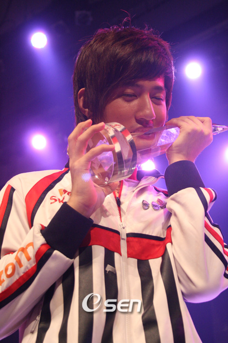 "'본좌'보다는 팬들의 기억에 오래 남는 선수가 되고 싶다". 프로토스 최초 3회 우승의 위업을 달성한 '혁명가' 김택용(19, SK텔레콤)은 기쁨을 감추지 못했다. 자랑스럽게 우승트로피를 들어올린 그는 팀원들과 아버지와 함께 우승의 감격을 함께 누렸다. 22일 서울 광운대 특설무대에서 열린 MSL 결승전서 허영무에게 3-1로 승리를 거둔 김택용은 우승상금 5000만원과 3회 우승자에게 주어지는 금뱃지를 수여받았다. 다음은 일문일답. - 프로토스 최초 3회 우승이다. ▲ 굉장한 영광이다. 우승하고 나서 강민 해설위원이 '너가 나보다 빨리하면 어떡하냐'라는 말씀을 하면서 축하해줬다. 프로토스 게이머들이 유능한 사람이 많은 만큼 앞으로도 3회 우승자는 많이 나올 거라 생각한다. - 1년만의 결승 무대였다. ▲ 오랜만의 결승이라 설레였다. 하루 전부터 설레는 마음을 주체 못할 정도였다. 그런데 첫 경기를 지니깐 너무 떨렸다. '오늘도 이렇게 지나'라는 생각도 할 정도였다. 그렇지만 위기 순간서 마인드 컨트롤을 하면서 오늘 경기를 승리할 수 있었다. - 1경기는 허무했다. ▲ 1경기를 졌을 때 화가 많이 났다. 2 리버가 탄 셔틀을 허무하게 잃으면서 나에게 분노했다. 감독님과 코치님이 조언을 잘해주셔서 마음을 다스릴 수 있었다. - 3세트 전진 게이트웨이 전략은 기막혔다. ▲ 고민을 많이 했다. 소울팀 선수들이 전진게이트를 하면 어떠냐는 추천을 해줬다. 그 옆에 박코치님이 계셨다. 센터 게이트 사각지대를 찾아준 위치가 그 곳이었다. 상대가 한 번 사용한 전략이라 역이용하려고 했다. 해 본 결과 파해법 보다는 컨트롤 싸움이 주효했다. - 본인 뿐만 아니라 팀으로써도 오랜만의 우승이다. ▲ 개인리그 우승과 함께 팀의 분위기가 올라갔으면 좋겠다. 프로리그가 좀 분위기가 안 좋은 것은 사실이다. 나의 우승이 보탬이 됐으면 좋겠다. - 'GG'를 받을 때 느낌은 ▲ 흥분을 많이 했다. 성격이 내성적이다 보니깐 표출을 잘 못했다. 슬펐던 순간과 기쁜 순간 여러 생각이 스쳐 지나갔다. - 스타리그만 남았다. ▲ 항상 아쉽게 떨어졌다. 열심히 했었는데 떨어지다 보니 트라우마도 생길 정도였다. 다음 시즌에는 어떡하든 극복을 할 생각이다. - 본좌에 대한 욕심이 날 법 한데. ▲ 나는 본좌 보다는 잘하는 선수. 나중에 기억에 남을 만한 선수 정도면 만족한다. 10년 20년이 지나도 내 이름을 기억한다면 무척 기쁠 것 같다. 본좌 대열에 오르지 않아도 - 그렇다면 목표는 없는가. ▲ 아직 구체적인 목표는 생각하지 않았다. 하반기 들어와서 그 날의 있는 경기만 최선을 다하자는 생각이었다. - 팬들에게 한 마디를 하자면. ▲ 그동안 팬들께 실망을 많이 드렸다. 오늘 경기도 응원을 많이 오셔서 감사한 마음이 많이 들었다. 응원에 힘입어 우승할 수 있었다. 항상 응원해주시면 항상 이기는 선수, 저의 팬 인게 자랑스러운 선수로 남고 싶다. scrapper@osen.co.kr