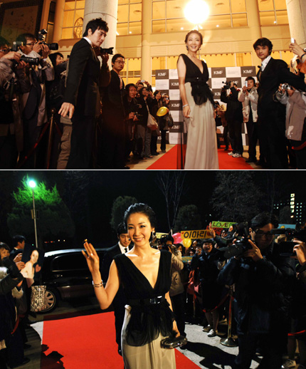 탤런트 최지우(33)가 한밤중에 홀로 레드카펫을 밞았다. 내달 10일부터 방송될 SBS 새 수목드라마 ‘스타의 연인’(오수연 극본, 부성철 연출)의 극중 촬영장면을 위한 것. 최지우는 24일 밤 11시 서울 광진구 능동 어린이회관 무지개극장 앞에서 진행된 야외촬영에서 레드카펫을 밟고 시상식장으로 향하는 모습을 연출했다. 최지우가 이 드라마에서 당대 최고의 톱스타로 각종 영화제를 석권하고 수많은 남자들에게 프로포즈를 받는 이마리 역을 연기한다. 이날 촬영장에는 200명의 보조출연자 외에 국내 팬을 비롯, 일본, 홍콩, 대만, 유럽 팬 등 총 500여 명이 참석해 눈길을 끌었다. 이들은 촬영 시작 몇 시간 전부터 현장에 도착해 자리를 지켰으며 박수치고 환호하는 장면을 여러 차례 연습하며 최지우를 응원했다. 촬영 스케줄이 자정을 넘겨 다음날 새벽까지 이어지는 바람에 본의 아니게 ‘한밤의 레드카펫’주인공이 된 최지우는 “추운 날씨에도 밤늦게까지 자리를 지켜준 팬들에게 감사한다”며 “이 같은 성원을 바탕으로 ‘스타의 연인’이 좋은 결과를 가져왔으면 좋겠다”고 말했다. yu@osen.co.kr SBS 제공.