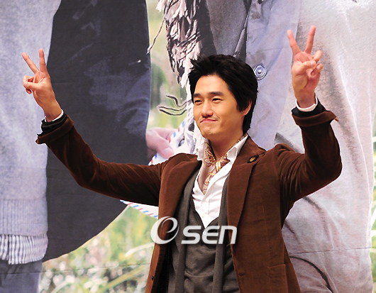 SBS 드라마스페셜 '스타의 연인'의 제작보고회가 주연배우 최지우 유지태 이기우 차예련이 참석한 가운데 25일 SBS 목동사옥에서 열렸다. 만인의 사랑을 받는 톱스타 여배우 마리와 국문학과를 나와 대필작가로 활동하는 철수의 아이러니한 사랑을 주제로 한 드라마다. 유지태가 양 손으로 'v'사인을 하며 포토타임을 갖고 있다./손용호 기자spjj@osen.co.kr