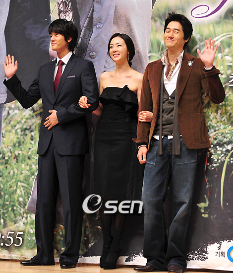 SBS 드라마스페셜 '스타의 연인'의 제작보고회가 주연배우 최지우 유지태 이기우 차예련이 참석한 가운데 25일 SBS 목동사옥에서 열렸다. 만인의 사랑을 받는 톱스타 여배우 마리와 국문학과를 나와 대필작가로 활동하는 철수의 아이러니한 사랑을 주제로 한 드라마다. 드라마에서 최지우와 삼각관계를 형성하는 유지태 이기우가 포토타임을 갖고 있다./손용호 기자spjj@osen.co.kr