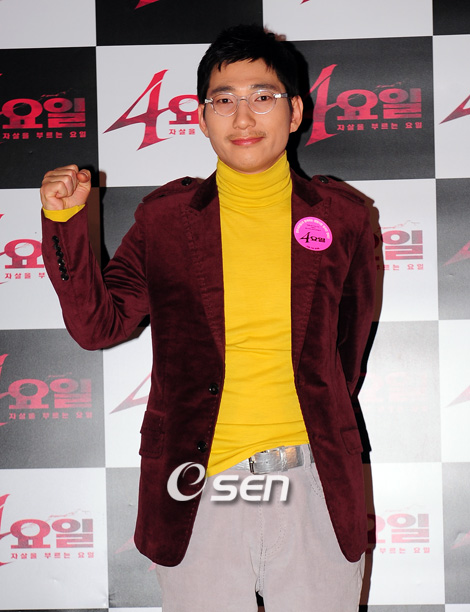 정운택 임예원 이재용 주연 영화 '4요일'(서민영 감독) 시사회가 28일 오후 중구 대한극장에서 열렸다. 부상으로 은퇴한 전직 야구선수, 시한부 인생을 선고 받은 암환자, 성적을 비관한 여고생 등 인터넷 자살 동호회에서 만난 11명의 사람들이 '자살'을 위해 폐교에 모인다. 그러나 사람들이 하나 둘 살인을 당하며 베일에 싸인 범인을 추리해가는 공포영화이다. 정운택이 포토타임을 갖고 있다./윤민호 기자ymh@osen.co.kr