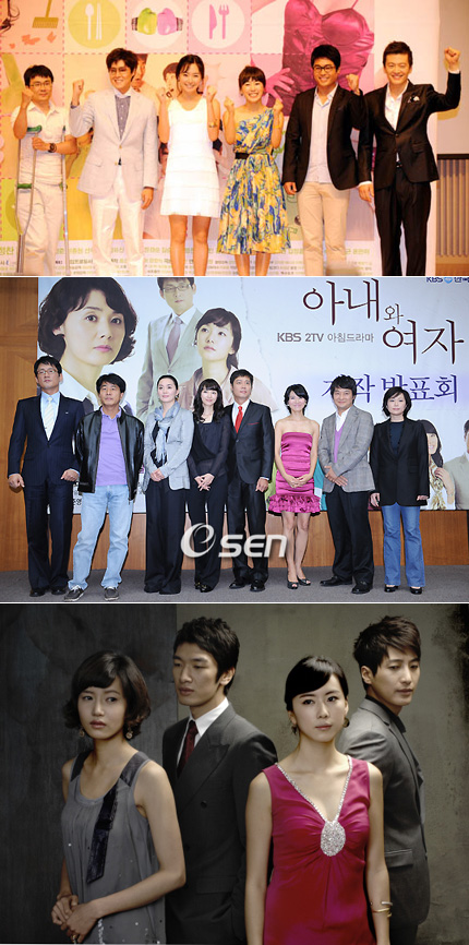‘며느리와 며느님’ 변함없이 1위…‘아내와 여자’ 2,4% 상승 MBC 아침드라마 ‘흔들리지마’ 종영에 SBS ‘며느리와 며느님’은 변합없이 1위 자리를, KBS 2TV ‘아내와 여자’는 깜짝 시청률 상승을 맛봤다. 시청률 조사회사 AGB닐슨 미디어 리서치에 따르면 28일 마지막 회를 방송한 ‘흔들리지마’는 18.8%를 기록, 동시간대 2위로 마침표를 찍었다. 동시간대 방송된 ‘며느리와 며느님’은 19.1%를, KBS 2TV ‘아내와 여자’는 9.8%의 시청률을 보였다. ‘흔들리지마’가 종영한 다음날인 29일 ‘아내와 여자’는 전날 9.8%에서 2.4% 상승, 두 자리 수인 12.2%로 시청률이 훌쩍 뛰어오르며 시청률 최대 수혜자가 됐다. SBS ‘며느리와 며느님’은 전날보다 1% 하락한 17.8%의 시청률을 보였지만 여전히 1위 자리를 고수했다. 다음 주 ‘흔들리지마’ 후속작으로 신은경 주연의 MBC ‘하얀 거짓말’이 방송되면서 아침드라마 3파전이 다시 어떤 양상을 보일지 기대를 모은다. 이날 방송된 ‘아내와 여자’에서는 갑작스레 냉정하게 변한 태환(이주석 분)의 모습에 신경 쓰이는 희수(정소영 분)의 모습이 방송됐으며, ‘며느리와 며느님’에서는 강민(정찬 분)이 주리(김연주 분)의 임신이 첫아이가 아님을 눈치 채고 준이가 주리의 아이라는 의심을 하게 되는 모습이 전파를 탔다. yu@osen.co.kr 위에서부터 '며느리와 며느님' ,'아내와 여자', '흔들리지마'.