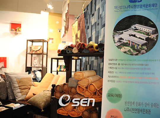 한국 공예의 현재와 미래를 볼 수 있는 ‘2008 공예트렌드페어’가 서울 강남구 삼성동 코엑스 태평양홀에서 3일부터 5일간 ‘꿈과 실용의 향연’에 들어갔다. 3회째 맞는 올해는 관람객의 적극적인 참여를 유도하기 위해 입장료 5000원을 내면 전시관에서 사용할 수 있는 5000원짜리 상품권으로 되돌려 준다. 나주시 천연염색문화재단에서 자연의 색을 그대로 담은 상품들을 선보이고 있다. /강희수 기자 100c@osen.co.kr [디지털무가지 OSEN 펀&펀]