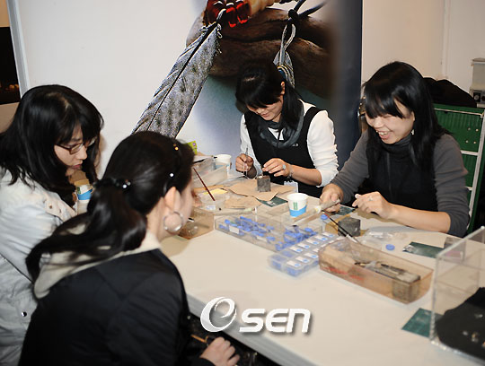 한국 공예의 현재와 미래를 볼 수 있는 ‘2008 공예트렌드페어’가 서울 강남구 삼성동 코엑스 태평양홀에서 3일부터 5일간 ‘꿈과 실용의 향연’에 들어갔다. 3회째 맞는 올해는 관람객의 적극적인 참여를 유도하기 위해 입장료 5000원을 내면 전시관에서 사용할 수 있는 5000원짜리 상품권으로 되돌려 준다. 신종 공예 소재인 '아트 클레이' 부스에서 관람객들이 작가들의 지도를 받으며 직접 제품을 만들어 보고 있다. /강희수 기자 100c@osen.co.kr [내 손안의 스포츠신문 OSEN 펀&펀]