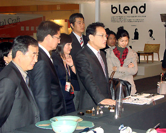 한국 공예의 현재와 미래를 볼 수 있는 ‘2008 공예트렌드페어’가 서울 강남구 삼성동 코엑스 태평양홀에서 3일부터 5일간 ‘꿈과 실용의 향연’에 들어갔다. 3회째 맞는 올해는 관람객의 적극적인 참여를 유도하기 위해 입장료 5000원을 내면 전시관에서 사용할 수 있는 5000원짜리 상품권으로 되돌려 준다. 유인촌 문화체육관광부 장관이 3일 오후 코엑스 현장을 찾아 전시관을 둘러보고 있다. /한국공예문화진흥원 제공. 온라인으로 받아보는 스포츠 신문, 디지털 무가지 OSEN Fun&Fun, 매일 3판 발행