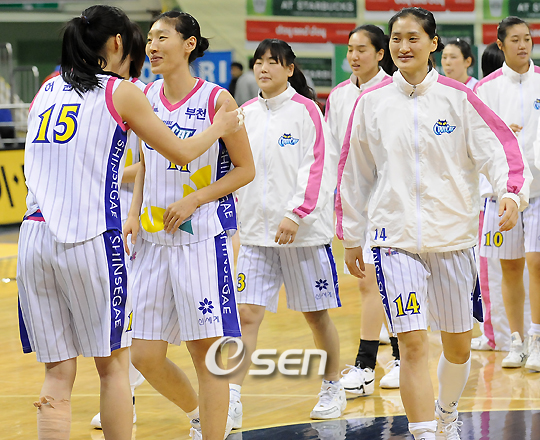 '2008-2009 KB 국민은행 여자프로농구' 신세계와 삼성생명의 경기가 5일 부천실내체육관에서 열렸다. 이날 경기에서 신세계는 삼성생명에게 75-68로 승리했다. 경기를 마치고 신세계 선수들이 미소지으며 퇴장하고 있다./부천=민경훈 기자 rumi@osen.co.kr 온라인으로 받아보는 스포츠 신문, 디지털 무가지 OSEN Fun&Fun, 매일 3판 발행