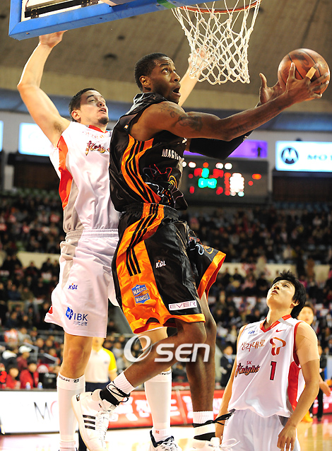 '2008-2009 동부 프로미 프로농구' 서울 SK 와 부산 KTF의 경기가 6일 잠실학생체육관에서 벌어졌다. 2쿼터 KTF 피터스가 SK 김민수의 블로킹을 피하기 위해 더블클러치로 리버스 레이업슛을 성공시키고 있다./학생체=손용호 기자spjj@osen.co.kr 온라인으로 받아보는 스포츠 신문, 디지털 무가지 OSEN Fun&Fun, 매일 3판 발행