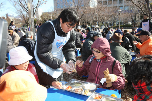 부산 아이파크 선수단은 6일 부산시청 앞 등대광장에서 부산밥퍼나눔운동 본부와 함께 어려운 이웃들 대상으로 무료급식 봉사활동을 펼쳤다. 기상청 예고대로 전국이 영하권으로 떨어진 추운 날씨에도 불구하고 코칭스태프와 선수들은 추위에 아랑곳 하지 않고 3시간의 야외 봉사활동을 무사히 마쳤다. 선수들과 함께 식판을 들고 분주히 움직였던 황선홍 감독은 "선수들에게 의미있는 시간이 된 것 같다"면서 "부산 시민과 함께 할 수 있는 시간이 계속 주어졌으면 한"고 밝혔다. 또 강철 코치는 "프로 선수들이 갖추어야 할 덕목 중 하나가 봉사하는 마음이라 생각한다"고 덧붙인 뒤 "고마워할 줄 아는 자세를 배웠으면 한다"고 전했다. 한편 부산 선수단은 7일부터 동계 훈련에 돌입할 예정이다. 10bird@osen.co.kr 부산 제공. 온라인으로 받아보는 스포츠 신문, 디지털 무가지 OSEN Fun&Fun, 매일 3판 발행