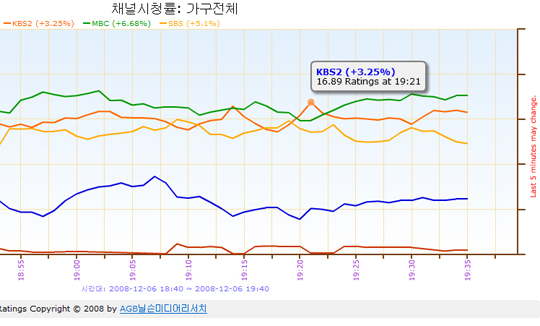 KBS 2TV ‘스펀지2.0’에서 생계형 범죄 에피소드를 방송한 순간의 실시간 시청률이 예능 최강 MBC TV ‘무한도전’을 제쳤다. 6일 시청률 조사회사 AGB닐슨 미디어 리서치가 제공하는 실시간 시청률(서울기준, 광고 제외)의 자료에 따르면 7시 20분경 KBS 2TV는 ‘스펀지 2.0’은 16.89%의 시청률을 기록했으며 이 때 MBC ‘무한도전’은 14.86%의 시청률을 기록했다. SBS ‘스타킹’은 13.55%의 시청률을 보였다. 이 순간 ‘스펀지 2.0’은 경제가 갈수록 어려워져 은행을 털 수 밖에 없는 절박한 생계형 범죄의 정보를 보여줬다. ‘무한도전’은 2009년 달력 만들기 특집으로 멤버들이 사진작가와 모델로 변해 사진촬영을 하는 과정을 담았다. 생계형 범죄 에피소드 이후 ‘스펀지 2.0’의 시청률은 다시 떨어졌고 ‘무한도전’이 ‘스펀지2.0’을 앞질렀다. 하지만 이날 실시간 시청률에서는 ‘스펀지 2.0’이 3차례 이상 ‘무한도전’을 앞질러 눈길을 끌었다. 종전 ‘무한도전’의 실시간 시청률은 순간순간이라도 1위를 뺏긴 적이 거의 없었다. crystal@osen.co.kr 온라인으로 받아보는 스포츠 신문, 디지털 무가지 OSEN Fun&Fun, 매일 3판 발행