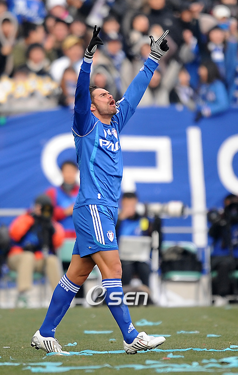 프로축구 챔피언을 가리는 '삼성 하우젠 K-리그 2008' 챔피언결정 2차전 수원삼성과 FC서울 경기가 7일 수원월드컵경기장에서 열렸다. 전반 11분 수원 에두가 선제골을 넣은 뒤 하늘을 향해 세리머니를 하고 있다./수원=민경훈 기자 rumi@osen.co.kr 온라인으로 받아보는 스포츠 신문, 디지털 무가지 OSEN Fun&Fun, 매일 3판 발행