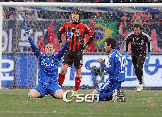 프로축구 챔피언을 가리는 '삼성 하우젠 K-리그 2008' 챔피언결정 2차전 수원삼성과 FC서울 경기가 7일 수원월드컵경기장에서 열려 수원 삼성이 2-1로 승리 4번째 별을 가슴에 달게 됐다.수원 선수들이 승리의 환호를 하고 있다./수원=윤민호 기자ymh@osen.co.kr 온라인으로 받아보는 스포츠 신문, 디지털 무가지 OSEN Fun&Fun, 매일 3판 발행