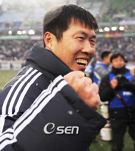 프로축구 챔피언을 가리는 '삼성 하우젠 K-리그 2008' 챔피언결정 2차전 수원삼성과 FC 서울 경기가 7일 수원월드컵경기장에서 열려 수원 삼성이 2-1로 승리 4번째 별을 가슴에 달게 됐다. 경기 종료후 차범근 감독이 환호하고 있다./민경훈 기자 rumi@osen.co.kr 온라인으로 받아보는 스포츠 신문, 디지털 무가지 OSEN Fun&Fun, 매일 3판 발행
