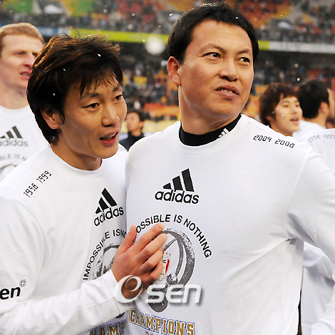 프로축구 챔피언을 가리는 '삼성 하우젠 K-리그 2008' 챔피언결정 2차전 수원삼성과 FC서울 경기가 7일 수원월드컵경기장에서 열려 수원삼성이 2-1 승리를 거두며 챔피언컵을 거머쥐었다. 경기 종료후 수원 이운재와 송종국이 기쁨을 나누고 있다./수원=민경훈 기자 rumi@osen.co.kr ▶ [사진]송종국, 개인적으로 첫 우승! ▶ [사진]송종국,'차범근 감독님께 샴페인을!' ▶ [사진]송종국,'감독님,샴페인 세례 받으셔야지요!' 온라인으로 받아보는 스포츠 신문, 디지털 무가지 OSEN Fun&Fun, 매일 3판 발행