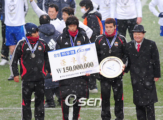 프로축구 챔피언을 가리는 '삼성 하우젠 K-리그 2008' 챔피언결정 2차전 수원삼성과 FC서울 경기가 7일 수원월드컵경기장에서 열려 수원삼성이 2-1 승리를 거두며 챔피언컵을 거머쥐었다. 준우승에 머문 FC서울이 시상식에 참가하고 있다./김영민 기자ajyoung@osen.co.kr 온라인으로 받아보는 스포츠 신문, 디지털 무가지 OSEN Fun&Fun, 매일 3판 발행