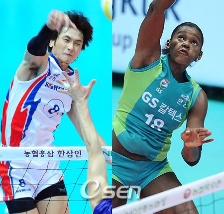 대한항공을 1라운드 5전 전승으로 이끈 김학민과 트리플크라운(후위공격, 서브, 블로킹 각 3점 이상)을 기록한 바 있는 GS칼텍스 데라크루즈가 '1라운드 베스트'로 선정됐다. 한국배구연맹(KOVO)은 8일 "김학민과 데라크루즈가 남자부와 여자부 1라운드 베스트로 선정됐다"고 발표했다. 김학민은 지난 달 22일 개막해 지난 7일까지 진행된 1라운드에 대한 라운드 베스트 투표에서 경기운영위원 4명, 심판위원 5명, 경기판독위원 4명 등 모두 13명 선거인단 중 11표를 얻어 남자부 첫 수상의 기쁨을 안았다. 김학민은 소속팀 대한항공을 5연승으로 1위에 오르게 한 일등공신으로 팀동료 칼라와 삼성화재 안젤코를 제치고 베스트에 뽑혔다. 김학민은 외국인 선수들의 전유물로 여겨지는 서브 부문에 팀 동료 칼라(0.57개)를 제치고 세트당 0.63개로 1위에 올랐으며 또한 득점 3위(83점), 공격성공률 2위(54.55%), 후위공격 3위(55.77%) 등 공격 부문 상위에 랭크 됐다. 여자부 데라크루즈도 9표를 받아 각각 1표씩을 받은 김연경(흥국생명), 아우리(현대건설)를 따돌리고 수상의 영광을 얻었다. 데라크루즈는 공격성공률(47.42%), 후위공격 득점(29점), 서브(세트당0.50개) 등 3개 부문 1위에 올라 맹위를 떨쳤다. 시상식은 10일 대전충무체육관에서 진행된다. 7rhdwn@osen.co.kr 온라인으로 받아보는 스포츠 신문, 디지털 무가지 OSEN Fun&Fun, 매일 3판 발행