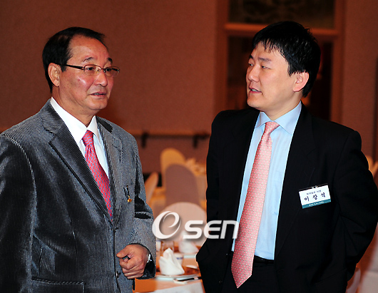 전통을 자랑하는 '2008 제일화재 프로야구대상 시상식'이 로이스터 감독을 제외한 7개구단 감독과 수상자들 각 구단 관계자들이 참석한 가운데 8일 오전 프라자 호텔에서 벌어졌다. 히어로즈 감독직에서 물러난 이광환 전 감독이 이장석 대표이사와 얘기를 나누고 있다./손용호 기자spjj@osen.co.kr 온라인으로 받아보는 스포츠 신문, 디지털 무가지 OSEN Fun&Fun, 매일 3판 발행